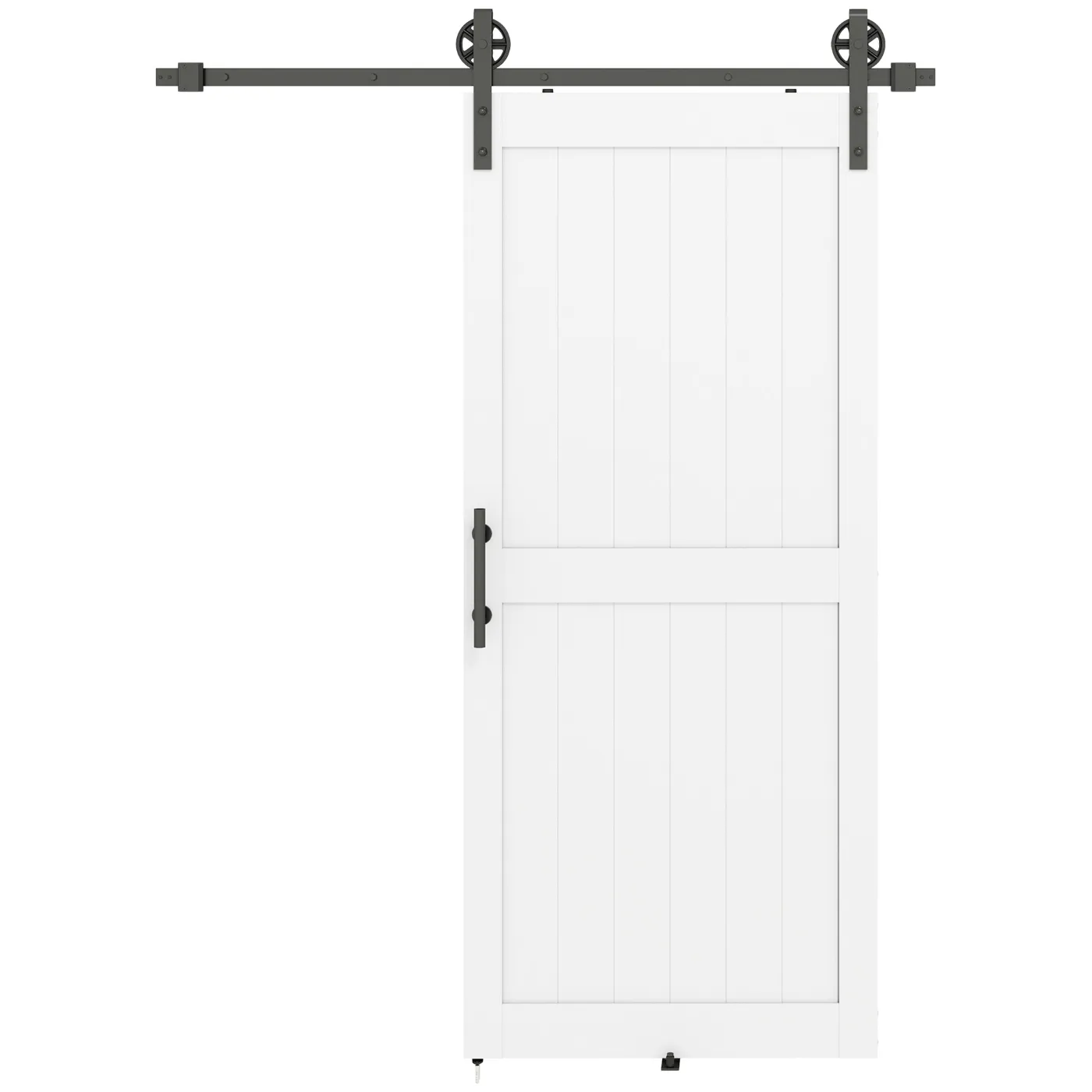 - STYLISH CONSTRUCTION Featuring a classic barn door design and an industrial-style handle, this sliding entry door maximizes space and adds a rustic touch to kitchens, bathrooms and living rooms.