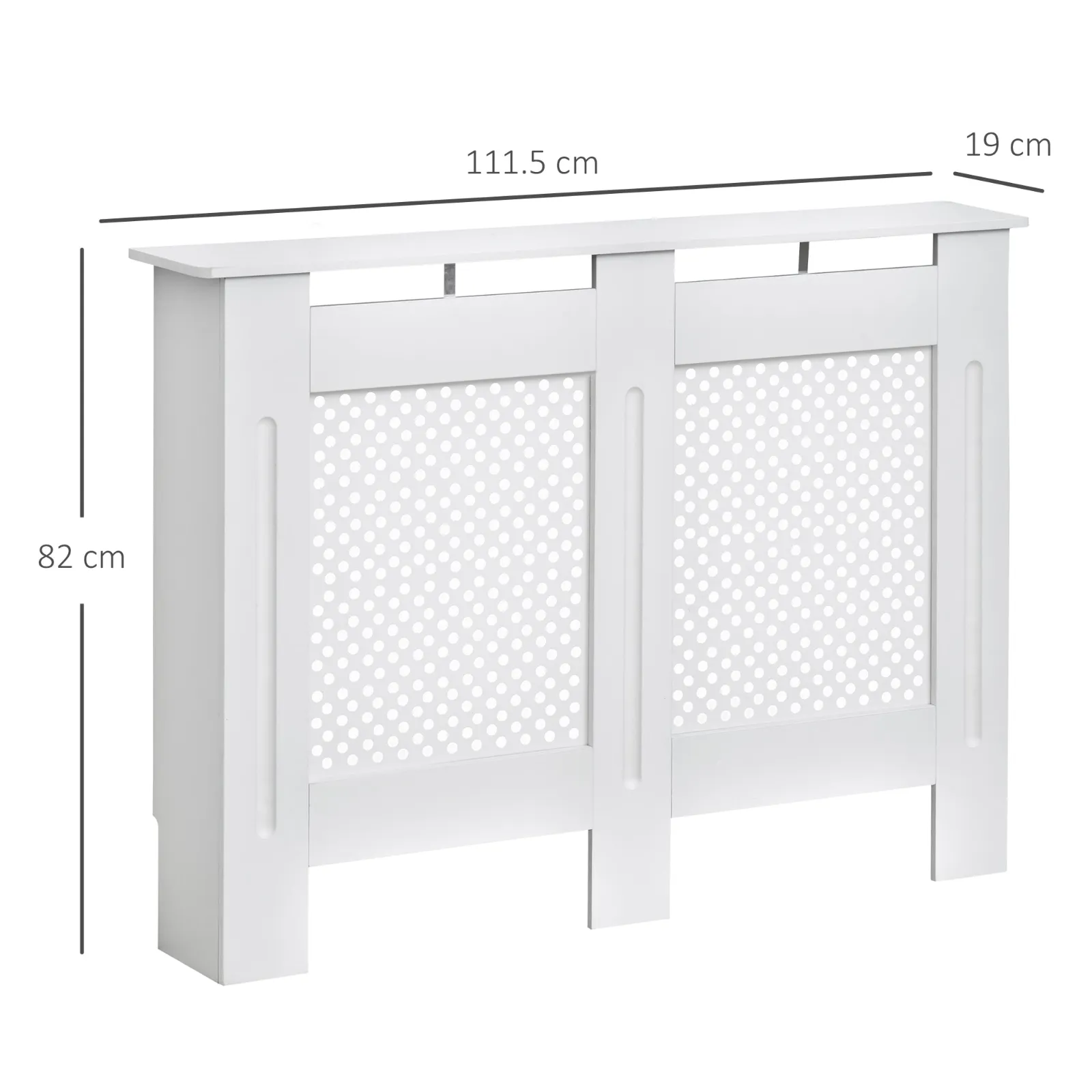 This Homcom covers is designed to hide the heater and give a touch of elegance to your home. Made of high quality MDF wood and with first -class processing. Suitable for any style of furniture. Cover has an ideal grid design to radiate heat efficiently. Easy to assemble with instructions included.Caratteristici made of MDF wood with refined finishes simple but contemporary design ideal to hide the radiator The front part is lacquered with white paint easy and fast assembly with accessories and instructions including Technical Color: White material: MDF wood size : 111.5 × 82 × 19cm