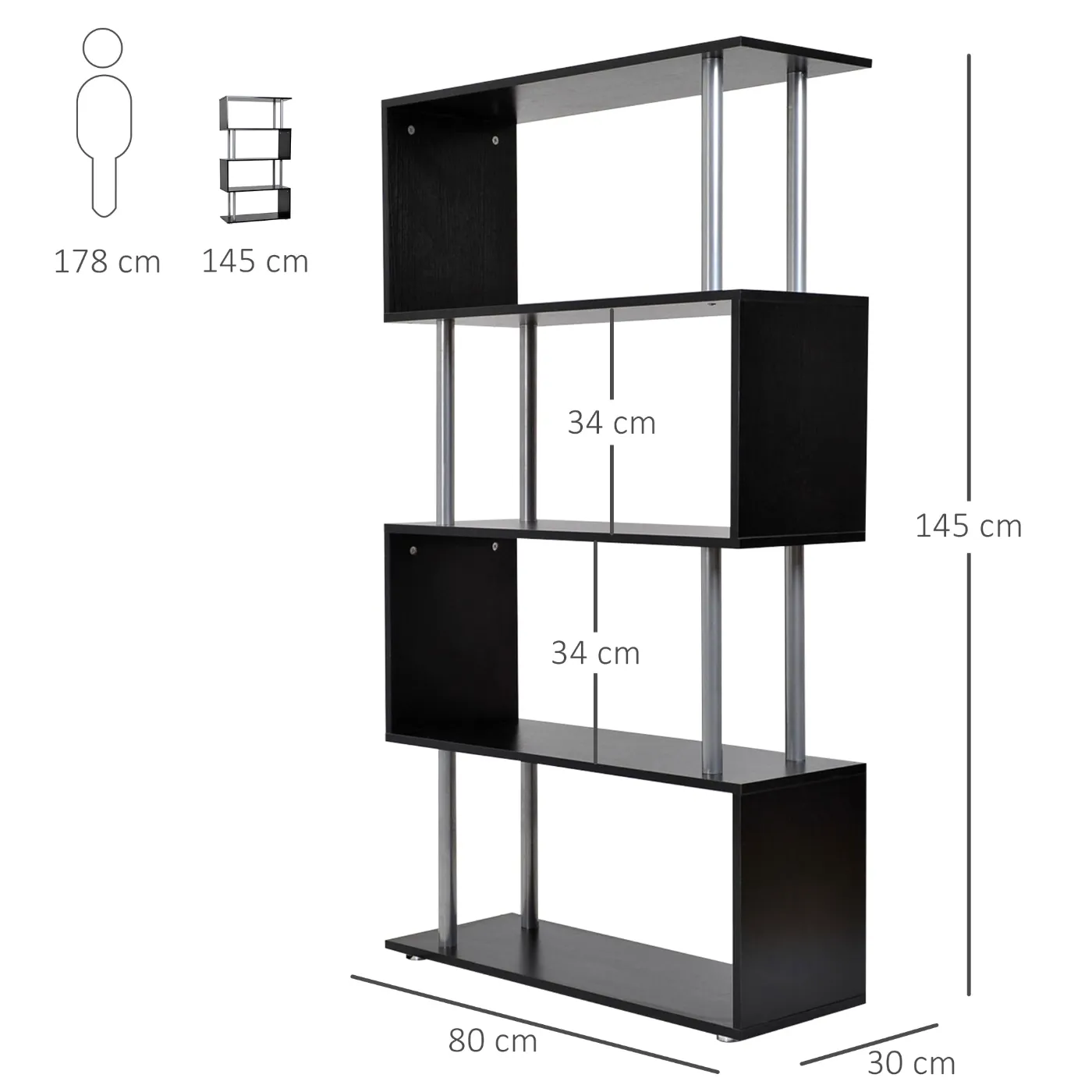 • DIMENSIONS: 80 x 30 x 145cm. Material: Chipboard, iron tubes. Shelf height: 34cm – Maximum load: 25kg.