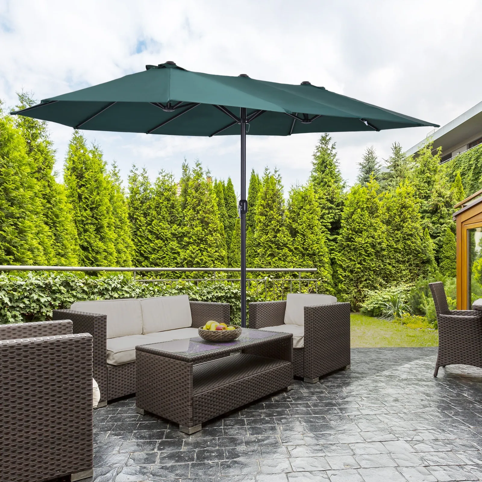 - • Large 4.55m double garden umbrella providing a large shaded area