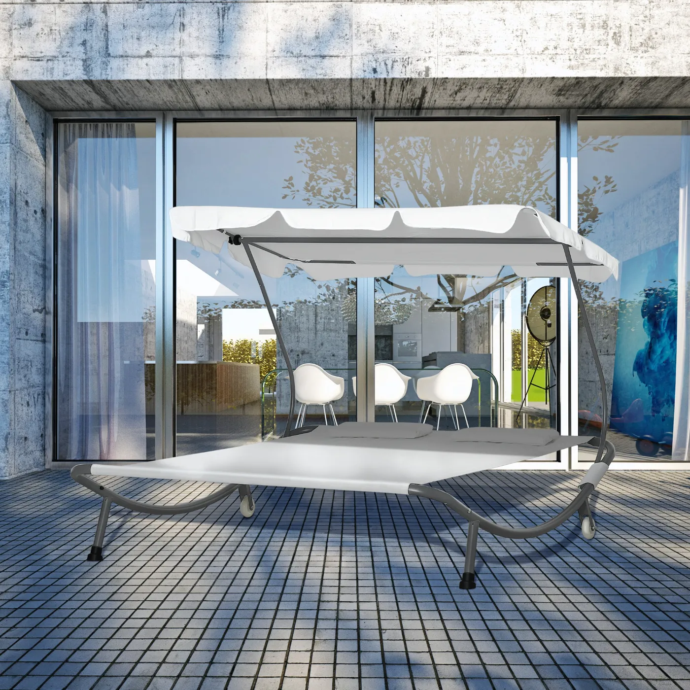 Double Lounger 2 Seater Adjustable Sunshade for Outdoor and Garden 200×175 x134cm Cream