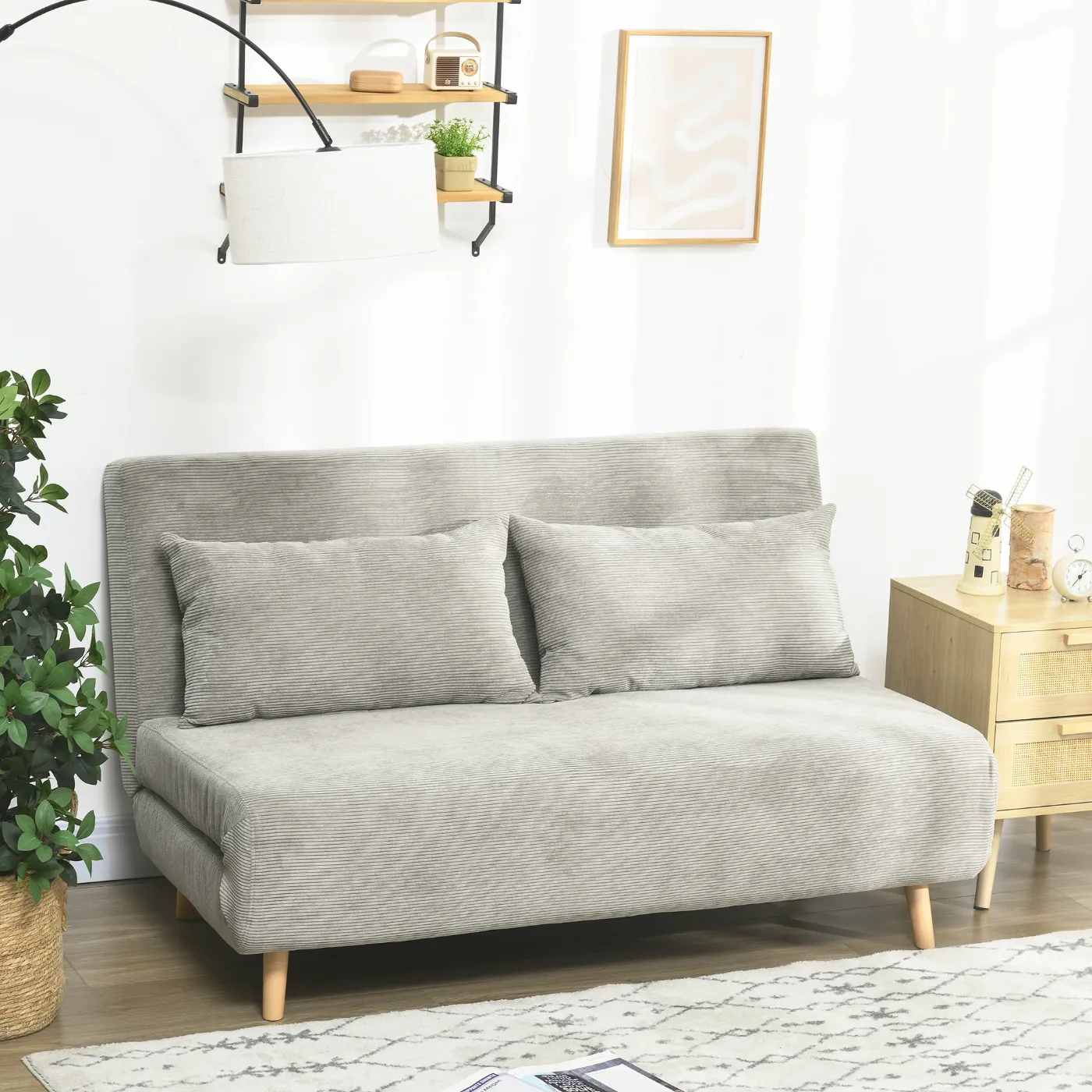 - STURDY STRUCTURE: The solid beech wood legs of this 2-seater sofa bed will be able to support you whenever you want to indulge in a bit of relaxation.