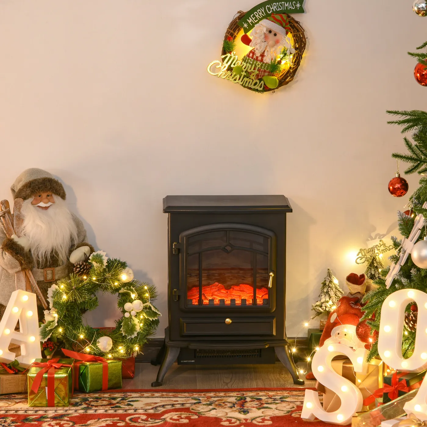 - FLAME EFFECT: This electric fireplace features an independent flame with adjustable brightness, creating a charming ambiance without the hassle and smoke of a real fire. The flame effect can also be used without the heating function.