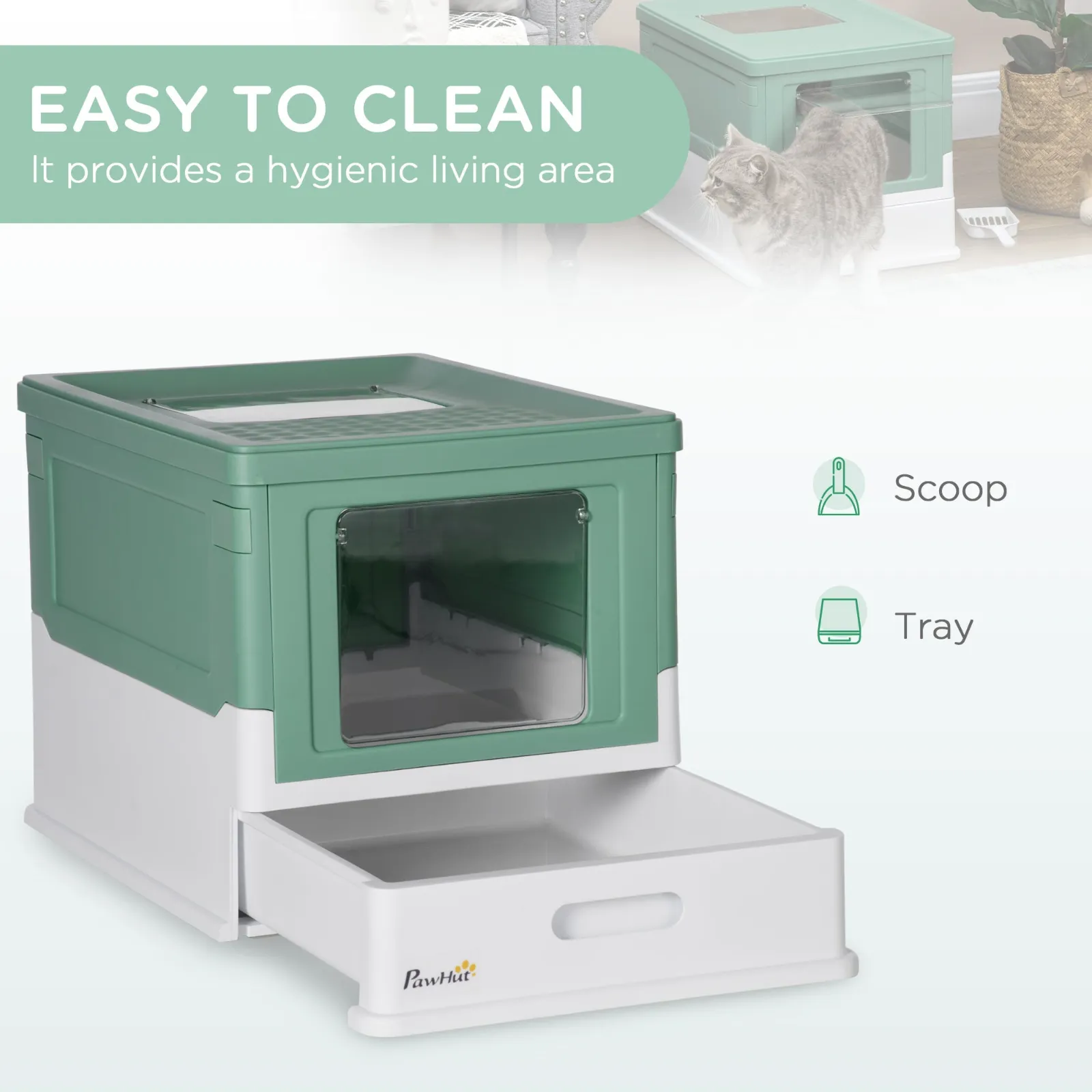 - EASY TO CLEAN: Equipped with a scoop, the covered litter box has a removable tray that allows you to easily clean the sand. The high edges also reduce the risk of sand spilling.