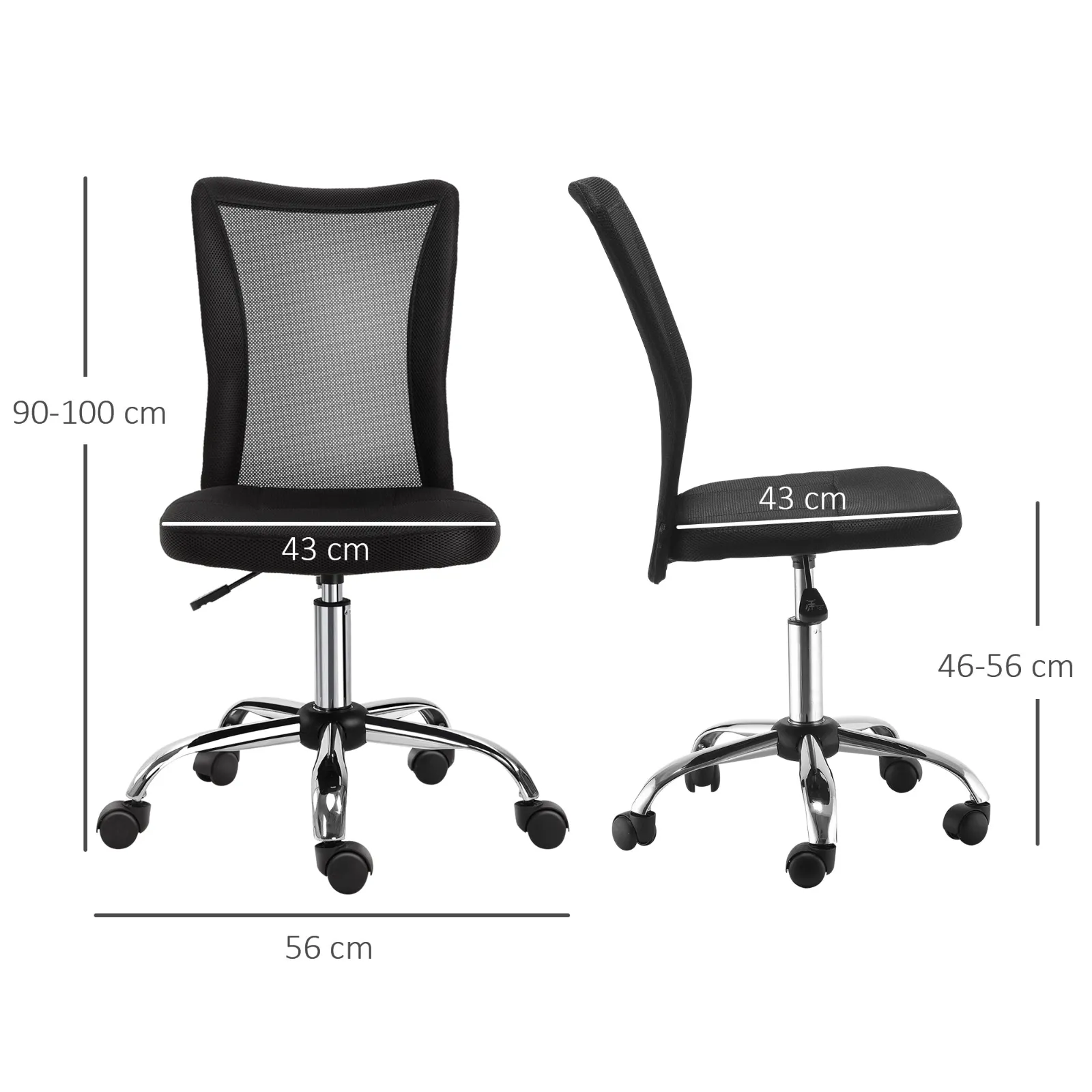 Ergonomic Office Chair Without Armrests, Breathable Mesh Fabric, Adjustable Height and 5 Wheels, 43x58x90-100cm, Black