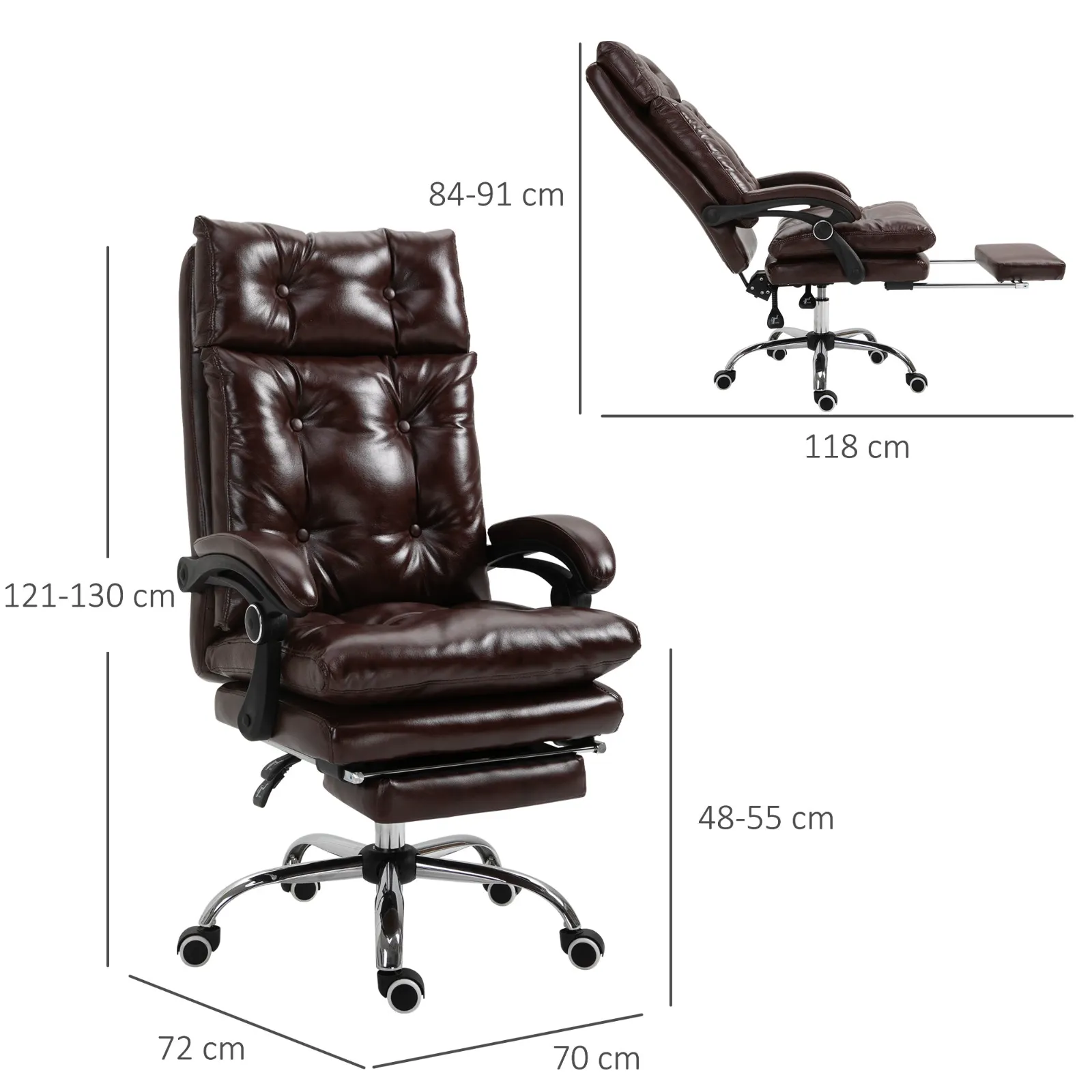 - TOTAL COMFORT: Thanks to the 135° tilt backrest, padded armrests, retractable footrest and soft faux leather upholstery, this presidential-style office chair will help you find all the concentration you need