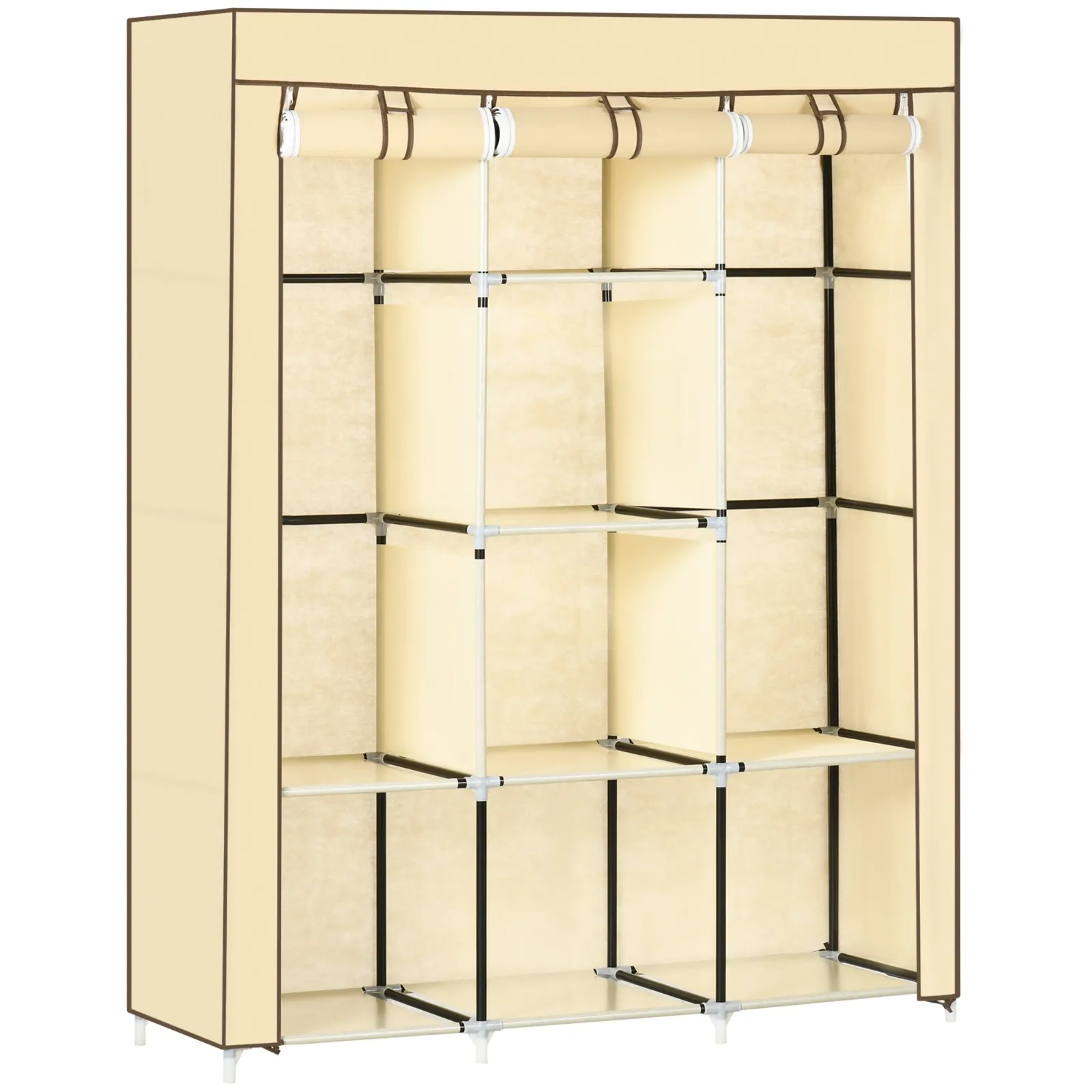 Fabric Wardrobe with 8 Shelves and 2 Rods with Roll Up Door, 125x46x162.5cm, Beige
