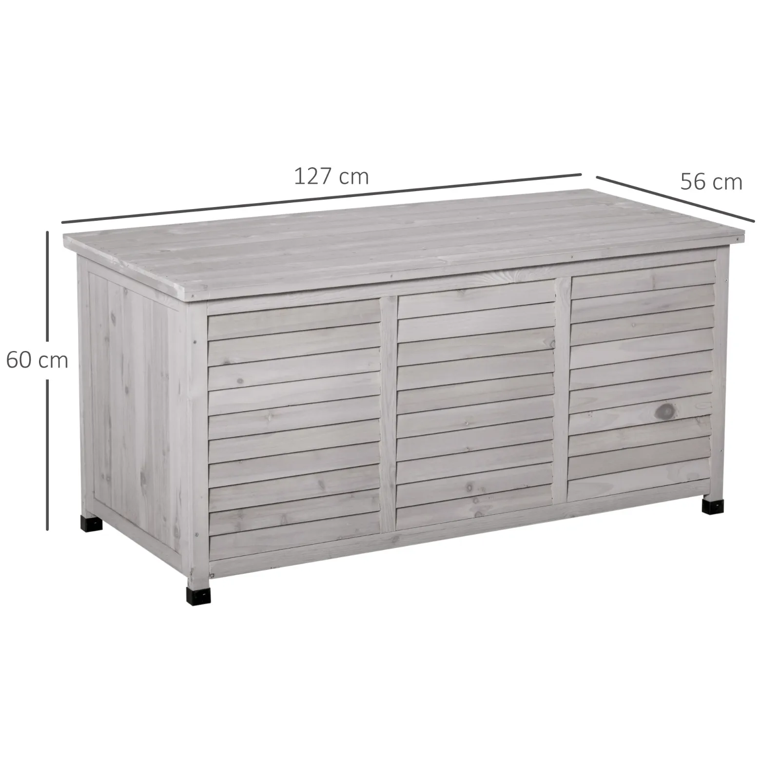 - FUNCTIONAL DESIGN: The raised bottom allows air circulation under the outdoor storage bench and prevents contact with wet ground. The outdoor storage bench has non-slip feet and the opening lid with 2 chains to secure it.