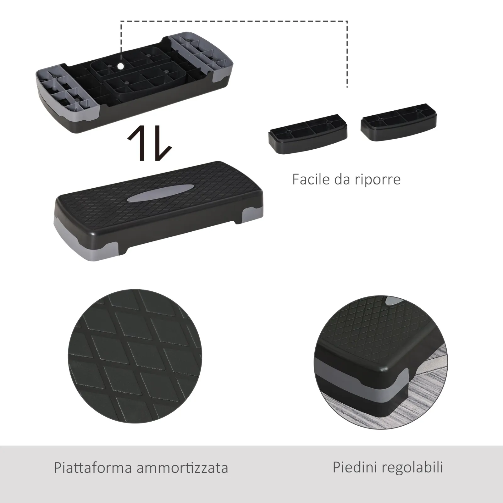 The Step Fitness Homcom with Rialzi is the inevitable tool for your training at home or in the gym. Light and easy to move, you can take it where you want to train at any time of the day. The adjustable height from 10cm to 15cm, the non -slip surface and the feet offer you maximum safety for your workout. Tone and strengthen your muscles with our steps for aerobics.