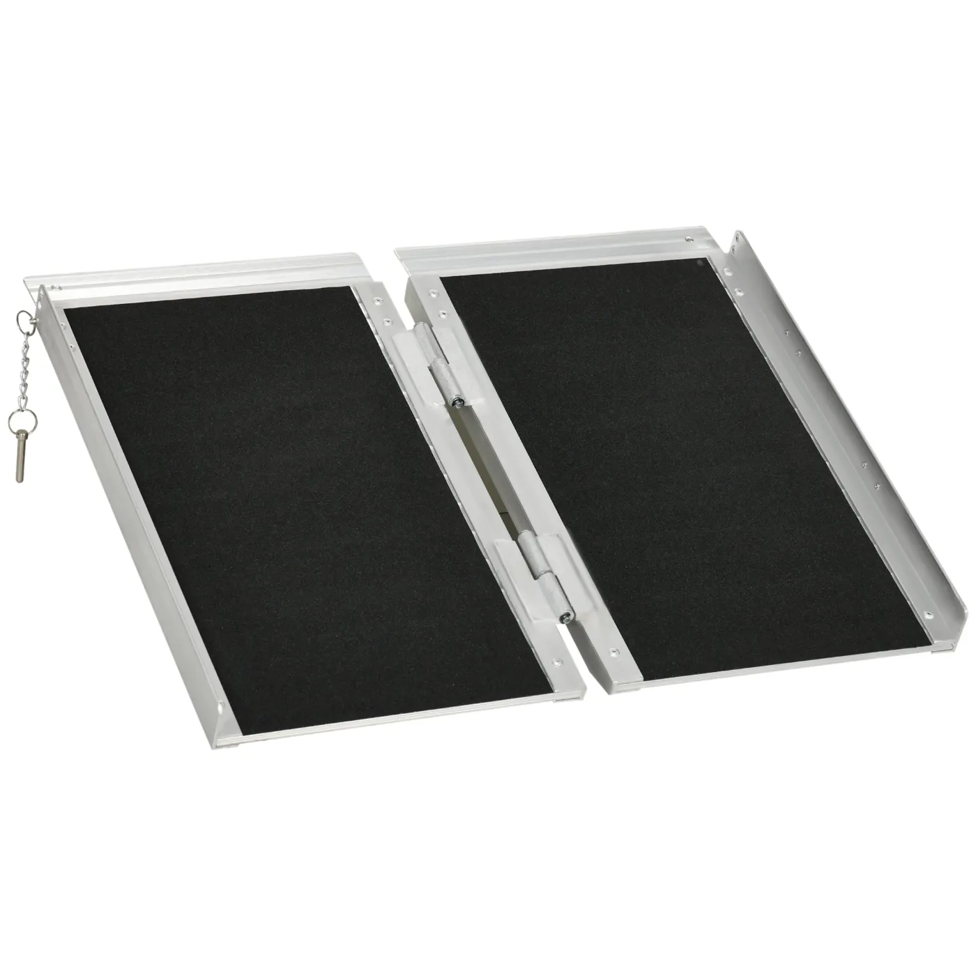 - NON-SLIP SURFACE: The aluminum wheelchair ramp prevents the wheels from moving unexpectedly, with a high guide on both sides for added safety. The top has a non-slip surface to prevent the wheels from moving when climbing.
