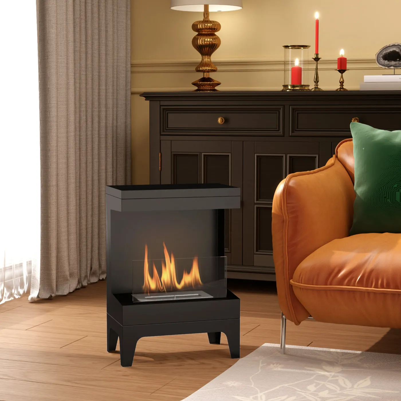 - REAL FLAME: Add a touch of sophistication to your home with this bioethanol fireplace. With real flames and a refined black finish, it heats your spaces without sacrificing style