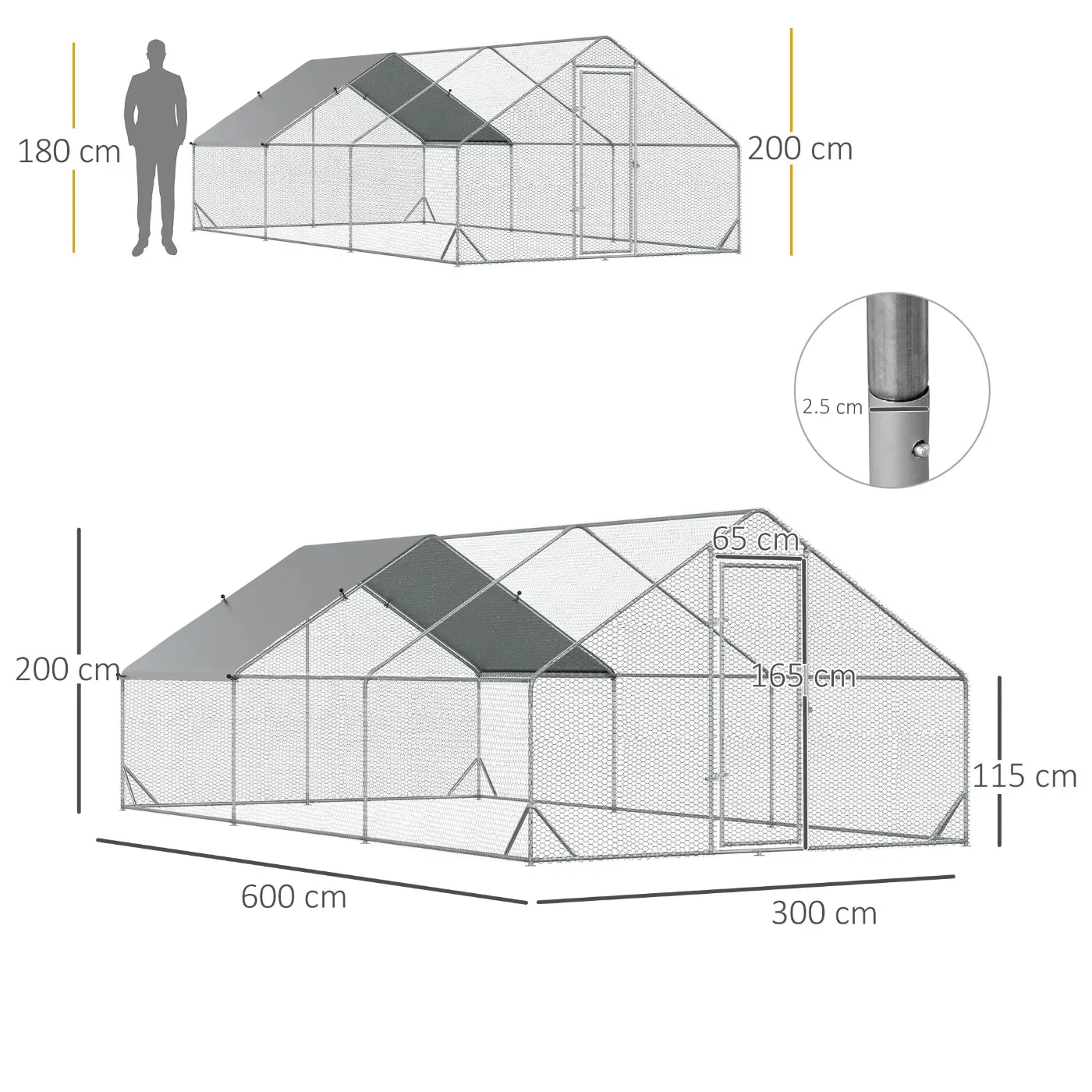 - SOLID CONSTRUCTION: Made of a galvanized steel frame and hexagonal steel mesh, this garden chicken coop is sturdy and provides your pets with a safe and secure environment.