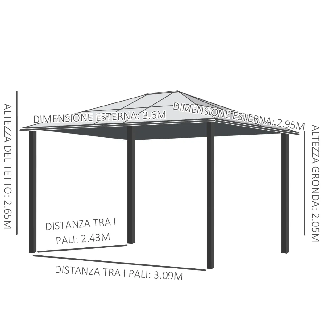 - PROTECTIVE: The garden gazebo roof is made of durable, fade-resistant, and UV-resistant polycarbonate, protecting you from the sun and creating a pleasant shaded space to enjoy the beautiful days.