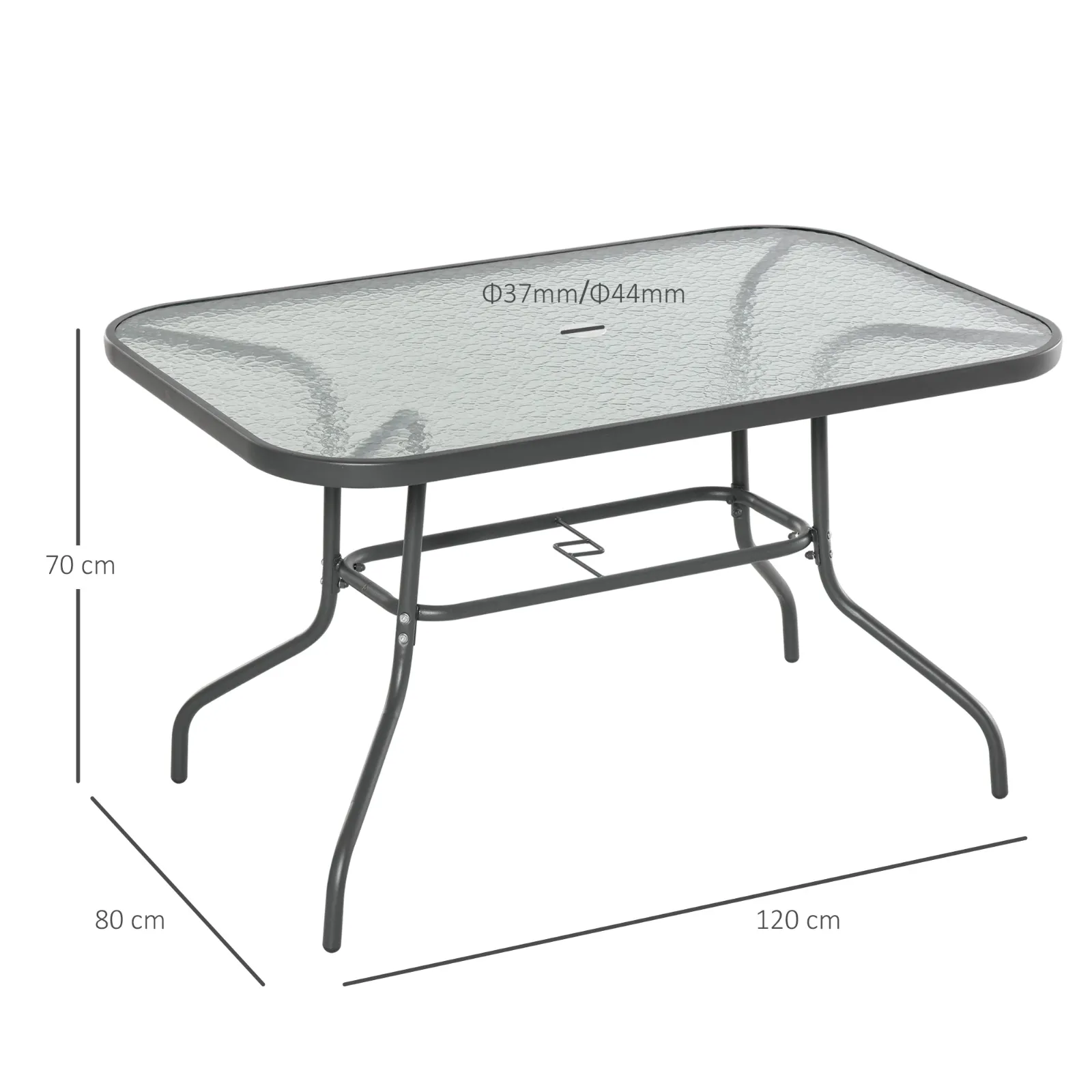- DIMENSIONS: Overall dimensions: 120L x 80D x 70Hcm. Umbrella hole: Φ3.8cm. Maximum weight capacity: 70kg. Assembly required.