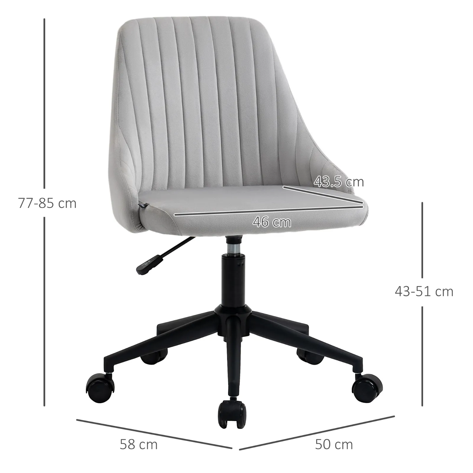 - DIMENSIONS: Overall dimensions: 50W x 58D x 77-87Hcm. Seat dimensions: 46W x 43.5D x 45-55Hcm. Maximum load: 120kg. Assembly required.