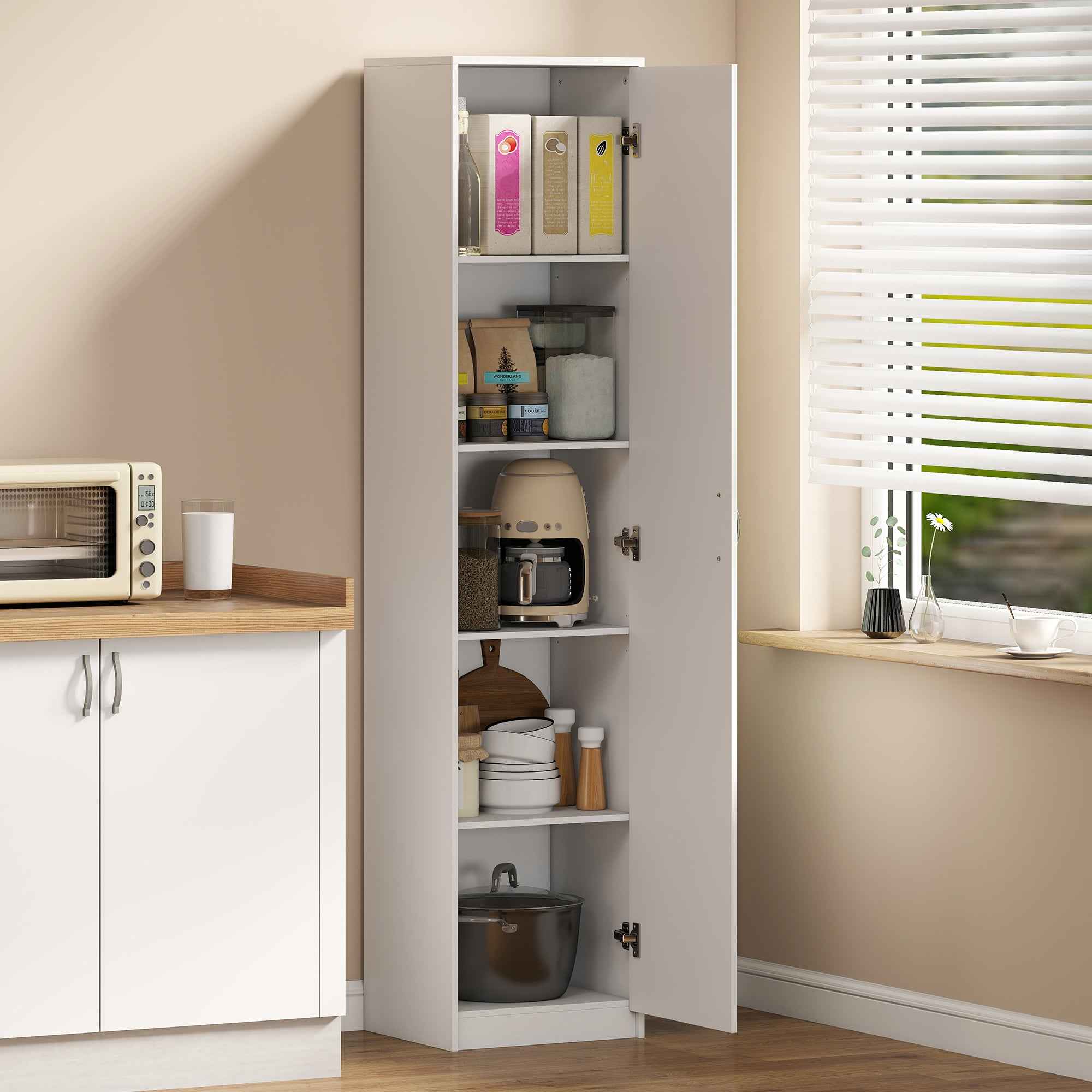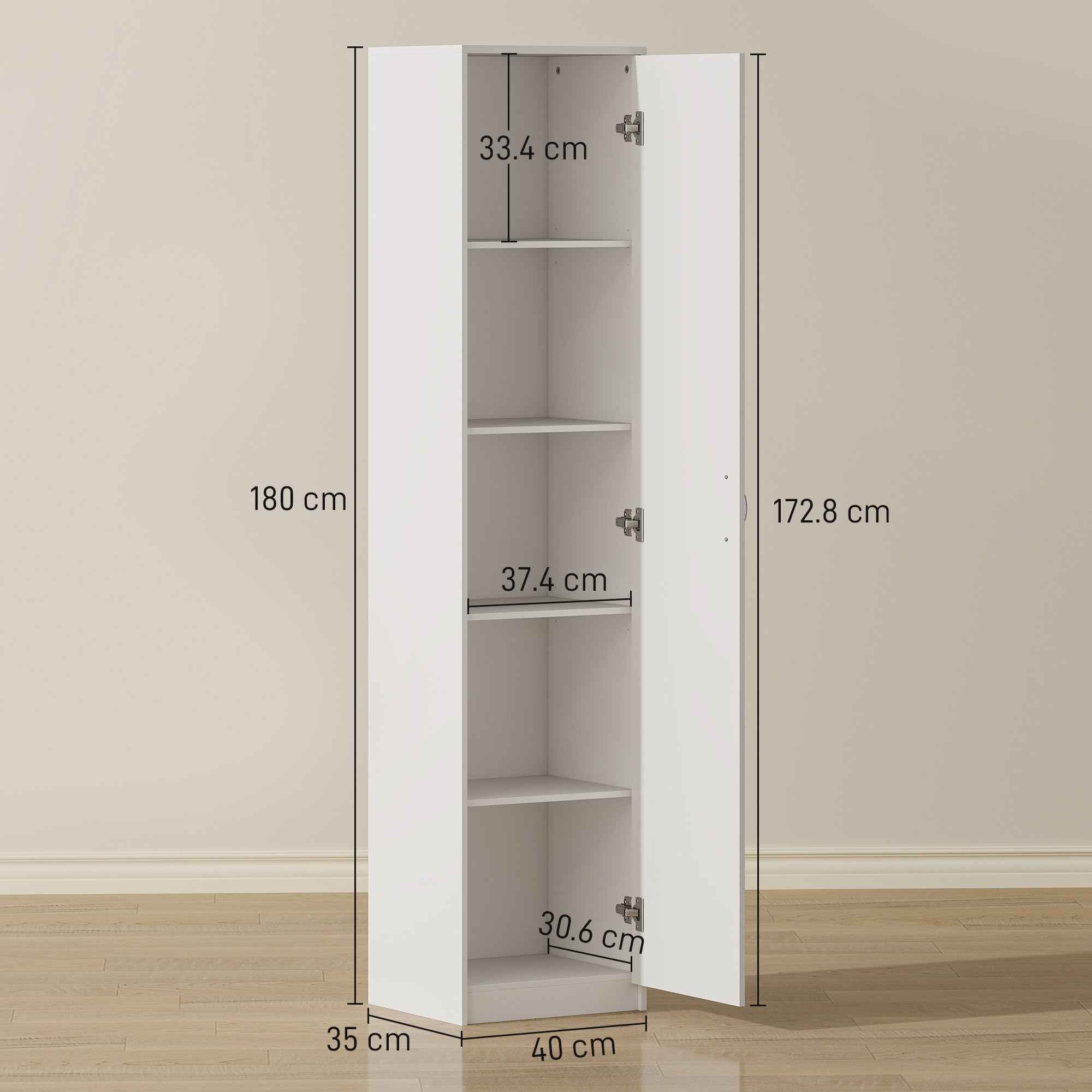 HOMCOM 5-Tier Slim Kitchen Cabinet with Adjustable Interior Space, Wooden, 40x35x180 cm, White
