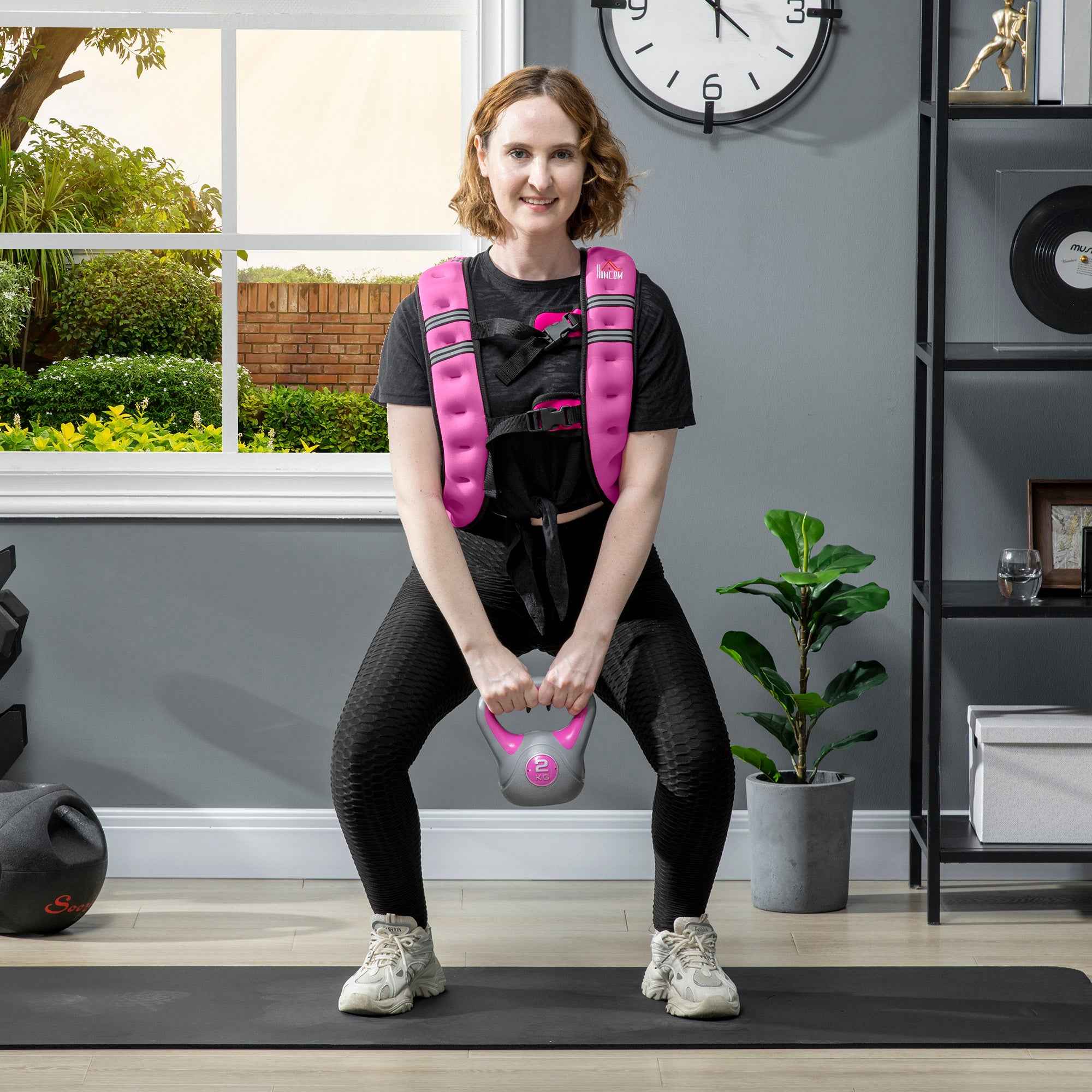Our HOMCOM weighted vest made of Oxford fabric and metallic sand provides reliable and comfortable support for all your strength training sessions. The storage space is suitable for storing phones, wallets, or keys to keep your hands and shorts free. The structure is equipped with air pockets with a notched design that promotes ventilation throughout the workout. Features: • Breathable weighted vest with air pockets • Soft and comfortable to wear over t-shirts, sports bras, and tank tops • Weighted vest equipped with 2 practical shoulder straps to adapt to any body and ensure a snug fit • Storage pocket included to store essentials, such as phones or wallets • Wider and thicker shoulder straps to prevent injuries Technical data: • Color: Pink • Material: Oxford fabric, metallic sand • Overall dimensions: 40L x 35D cm • Total weight: 8 kg Package contents: • 1 x Weighted Vest • 1 x Instruction manual