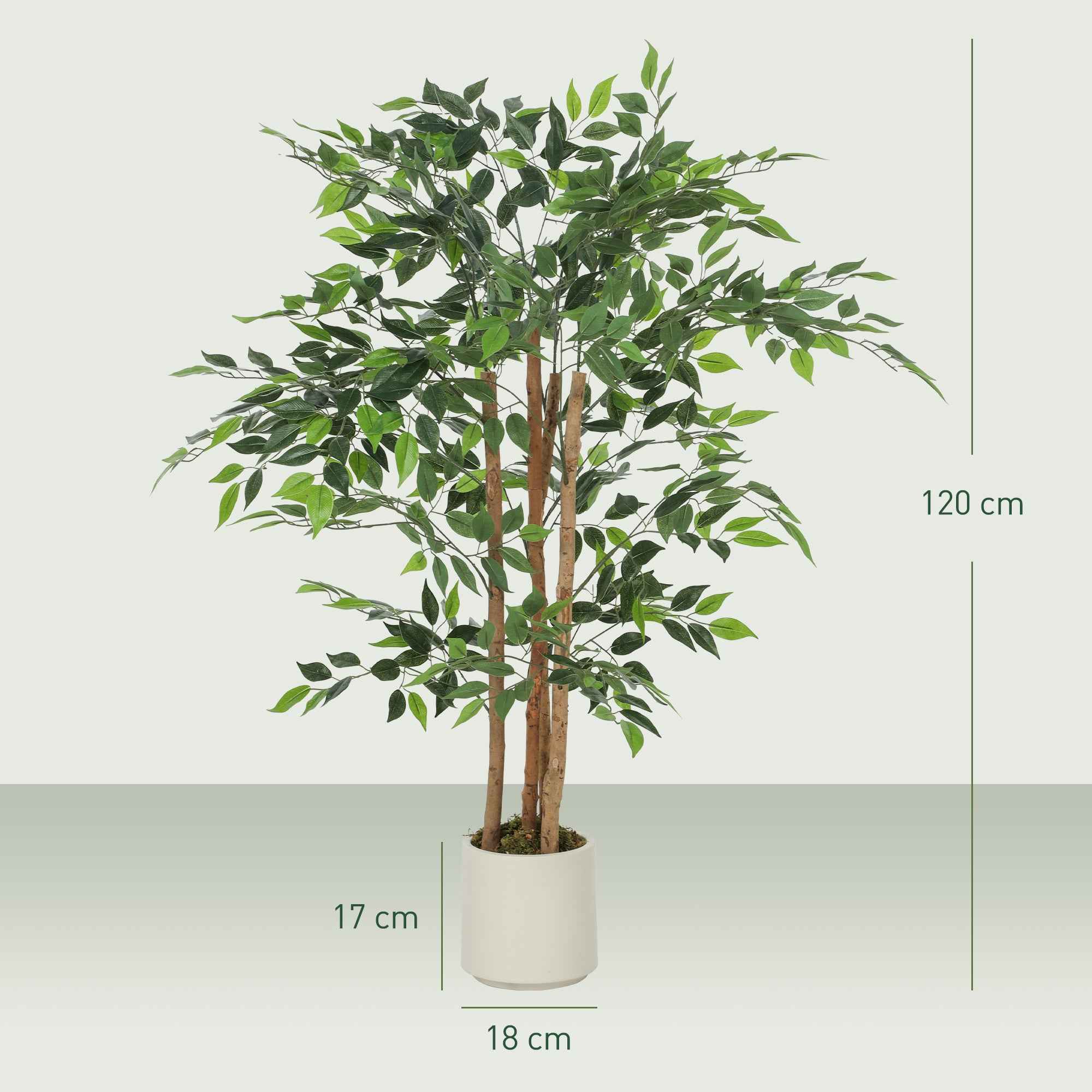 HOMCOM Artificial Green Banyan Tree Plant in PEVA and Wood with PP and Cement Container Pot, 55x55x120 cm