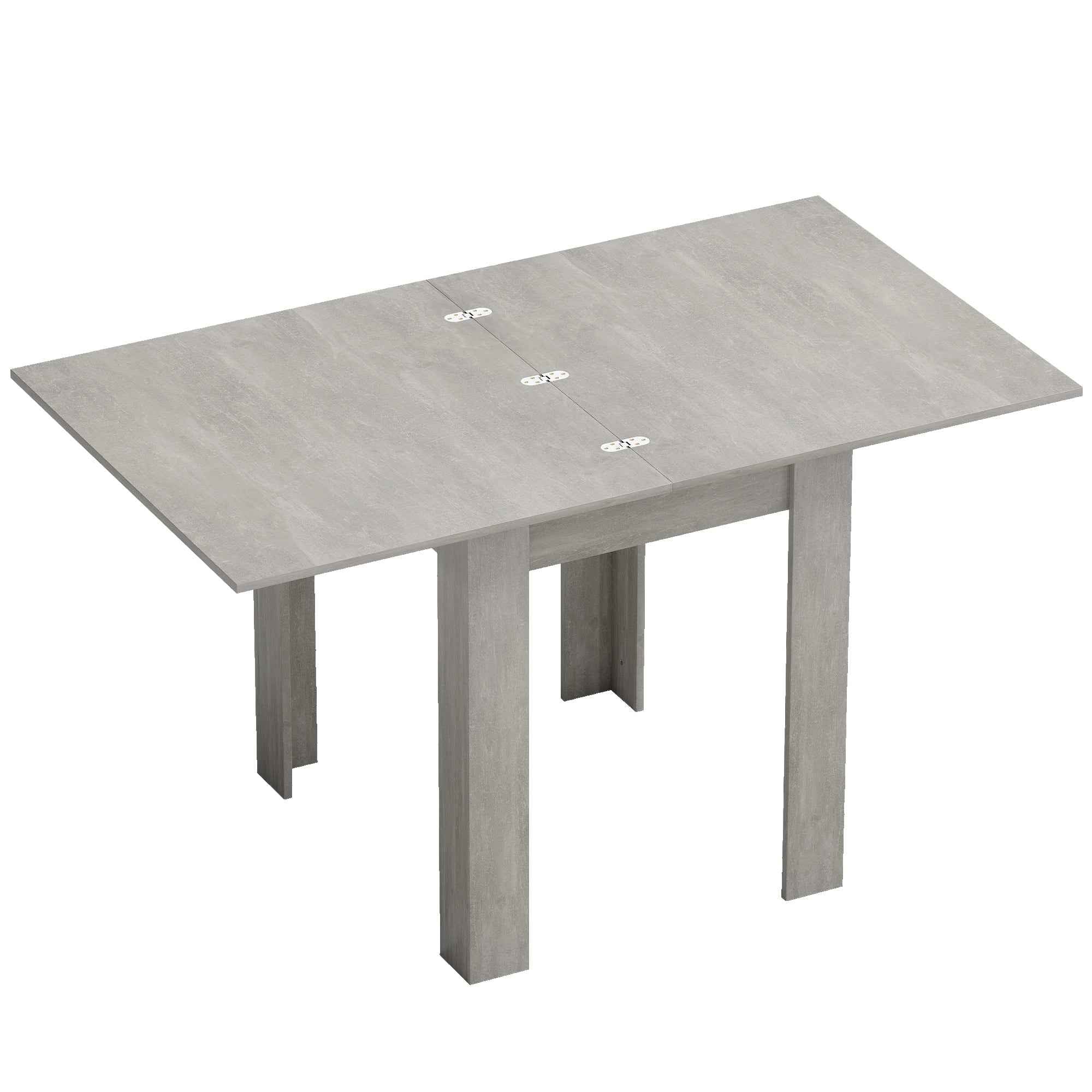 Update your dining room with our HOMCOM extendable table. The table seats 4 and easily expands to accommodate up to 6 guests at your dinners, brunches, or birthday parties. The hidden extension folds away to optimize space when not in use. Thanks to its modern design and sturdy construction, this kitchen table adds style and functionality to any room. Features: • This kitchen table easily opens to seat 4 to 6 people • Compact when folded, ideal for smaller spaces • Extendable table made of particleboard for sturdy support and long-lasting durability • Each leg of the dining table includes felt feet to protect the surface and increase stability • The melamine-coated surface resists stains and scratches, making it easy to clean with a modern look • Assembly required Specifications: • Color: Natural wood, grey • Material: Chipboard, steel • Overall dimensions: 140W x 80D x 77.5H cm • Folded dimensions: 70W x 80D x 79H cm • Tabletop dimensions: 140W x 80D cm (extended), 70W x 80D cm (folded) • Weight capacity: 30 kg Package contents: • 1 x Kitchen Table extendable lunch• 1 x Assembly manual