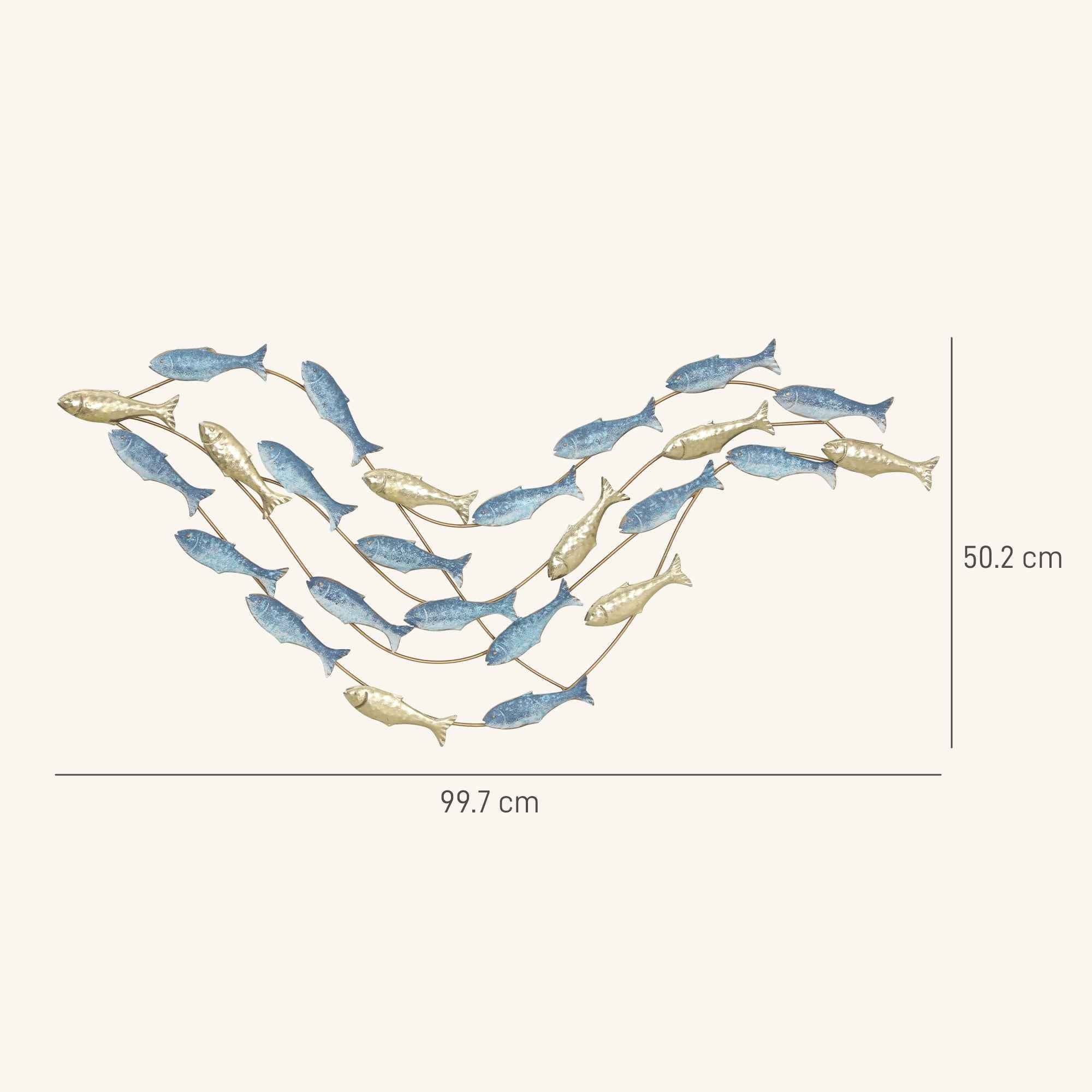 HOMCOM Metal Fish Wall Art with Screws Included, 99.7 x 3.8 x 50.2 cm, Gold and Blue