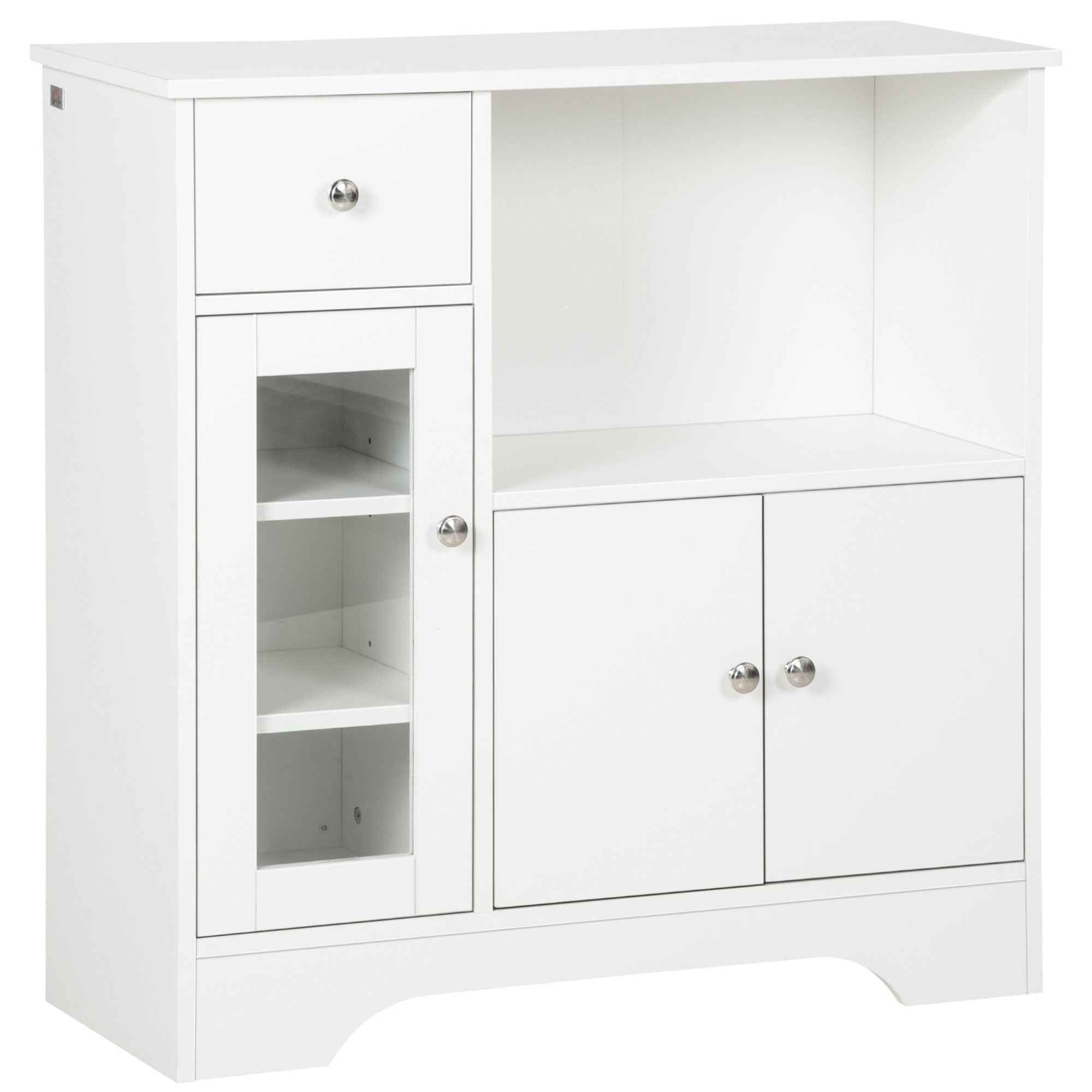 HOMCOM Sideboard Buffet with Open Compartment, Drawer, 3 Shelves and 2-Door Cabinet, Wooden, 80x30x82 cm, White