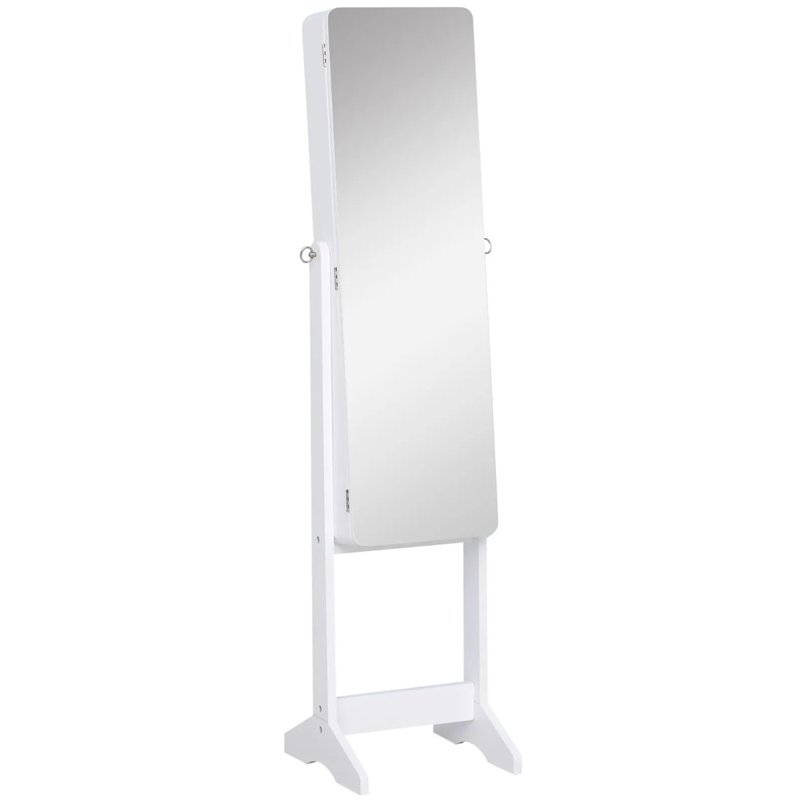 • • Features 3 lower shelves, 3 rows of earring holes, 5 necklace hooks, 3 scarf rods, a storage bag, 1 ring holder, 9 pencil holders, a mirror and a folding table