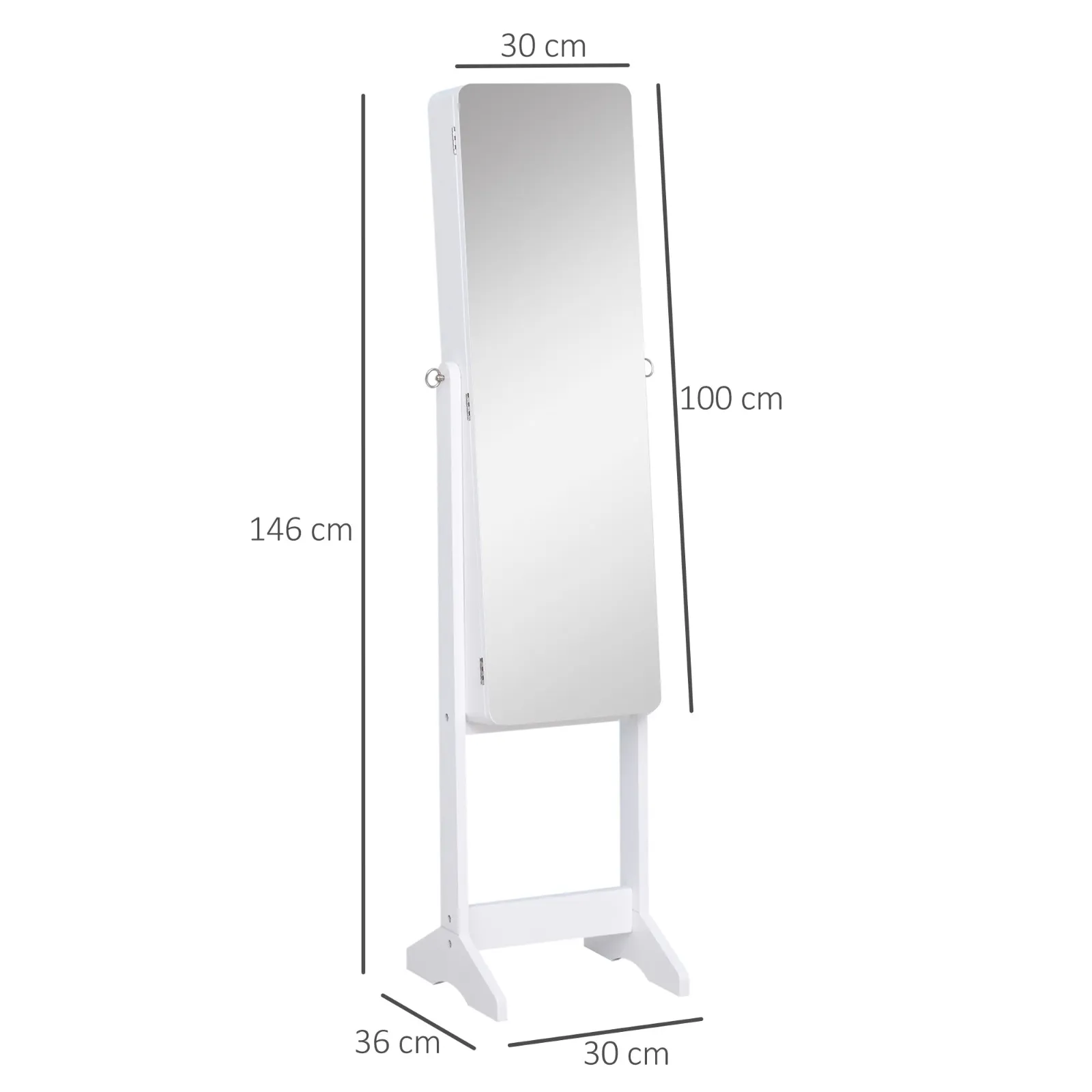 Jewellery Cabinet with Adjustable Mirror and LED Lighting, Wood, White, 30x146x36 cm