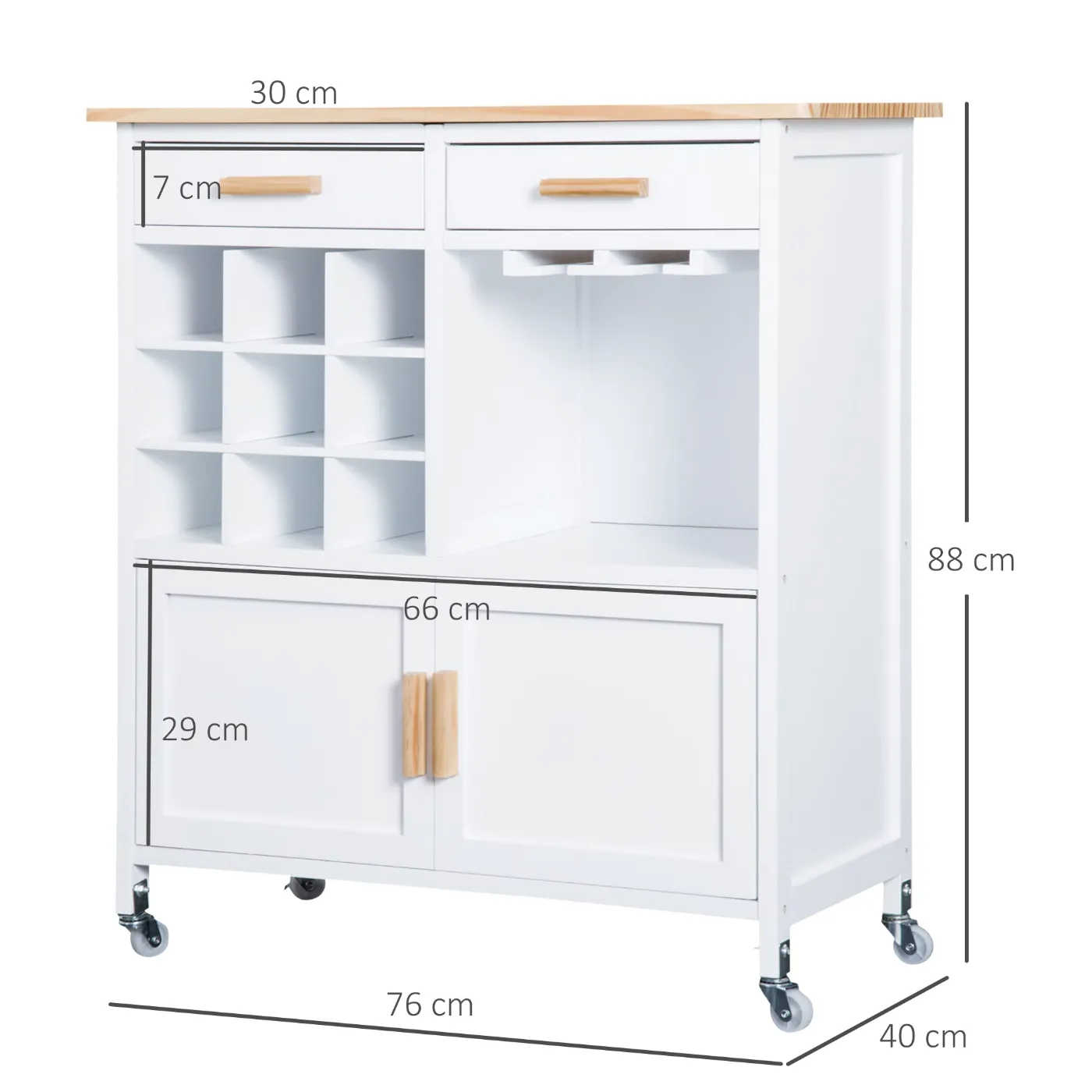 Kitchen Cabinet with Wheels, Bamboo Bottle Rack and Glass Holder, 76 x 40 x 88cm