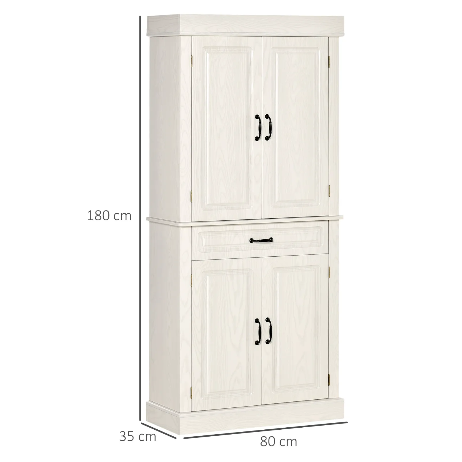 Kitchen Credenza with 2 cabinets and colonial style drawer, 80x35x180 white white