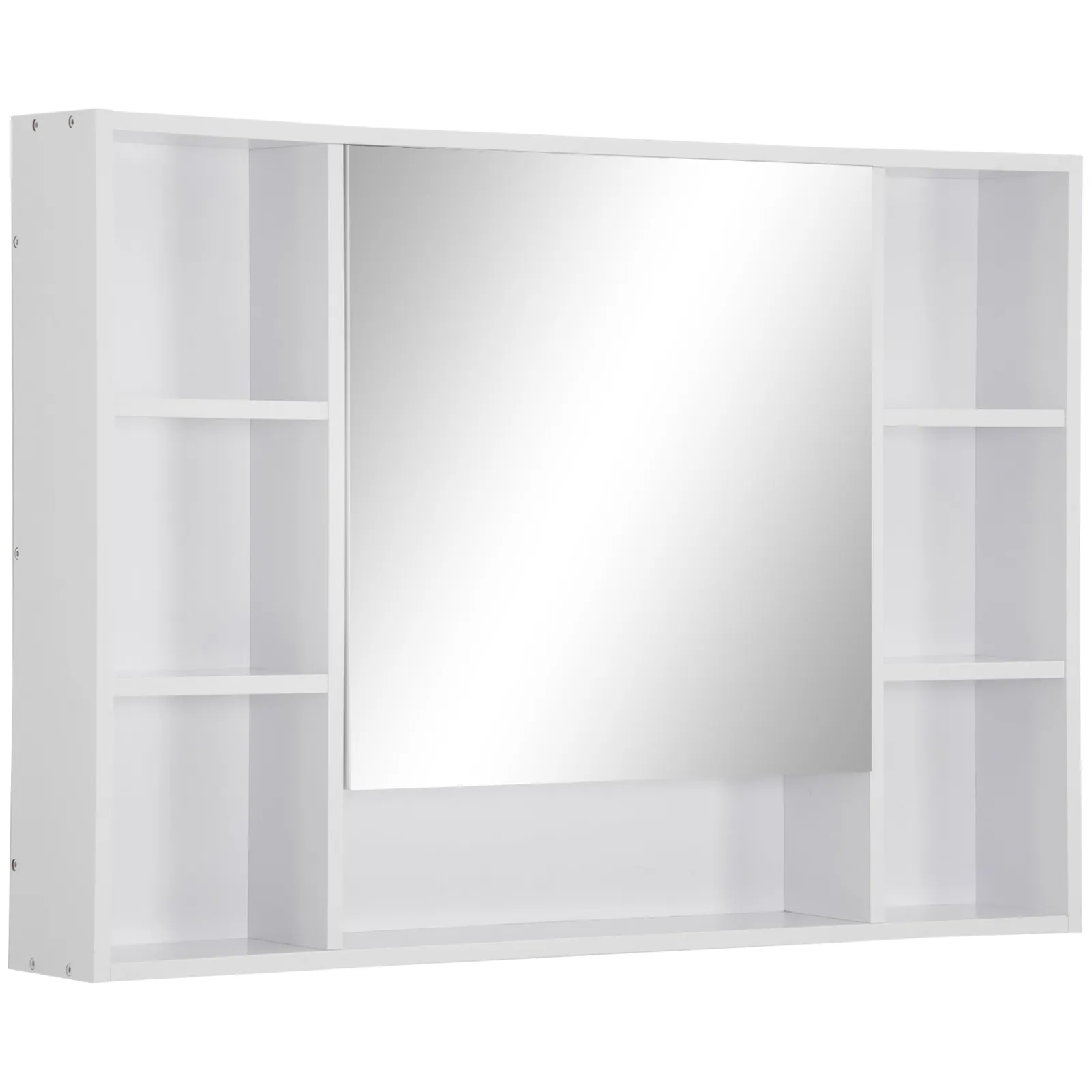 Kleankin Bathroom mirror with shelves and locker with mirrored door, 100x15x70cm, white