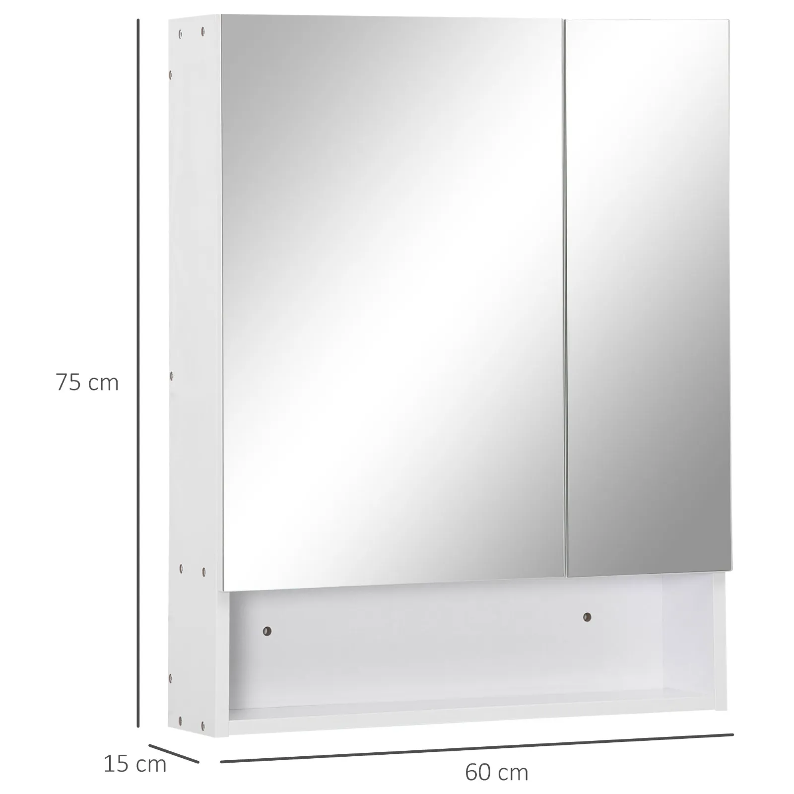 Kleankin rectangular mirror cabinet with beliefs and adjustable shelf, 60x15x75cm