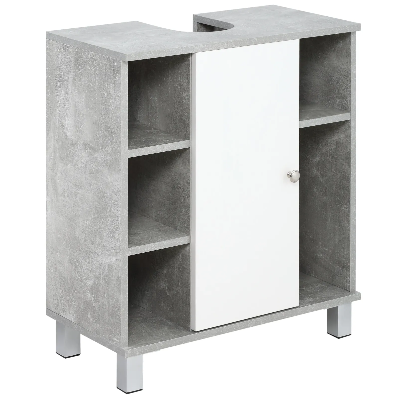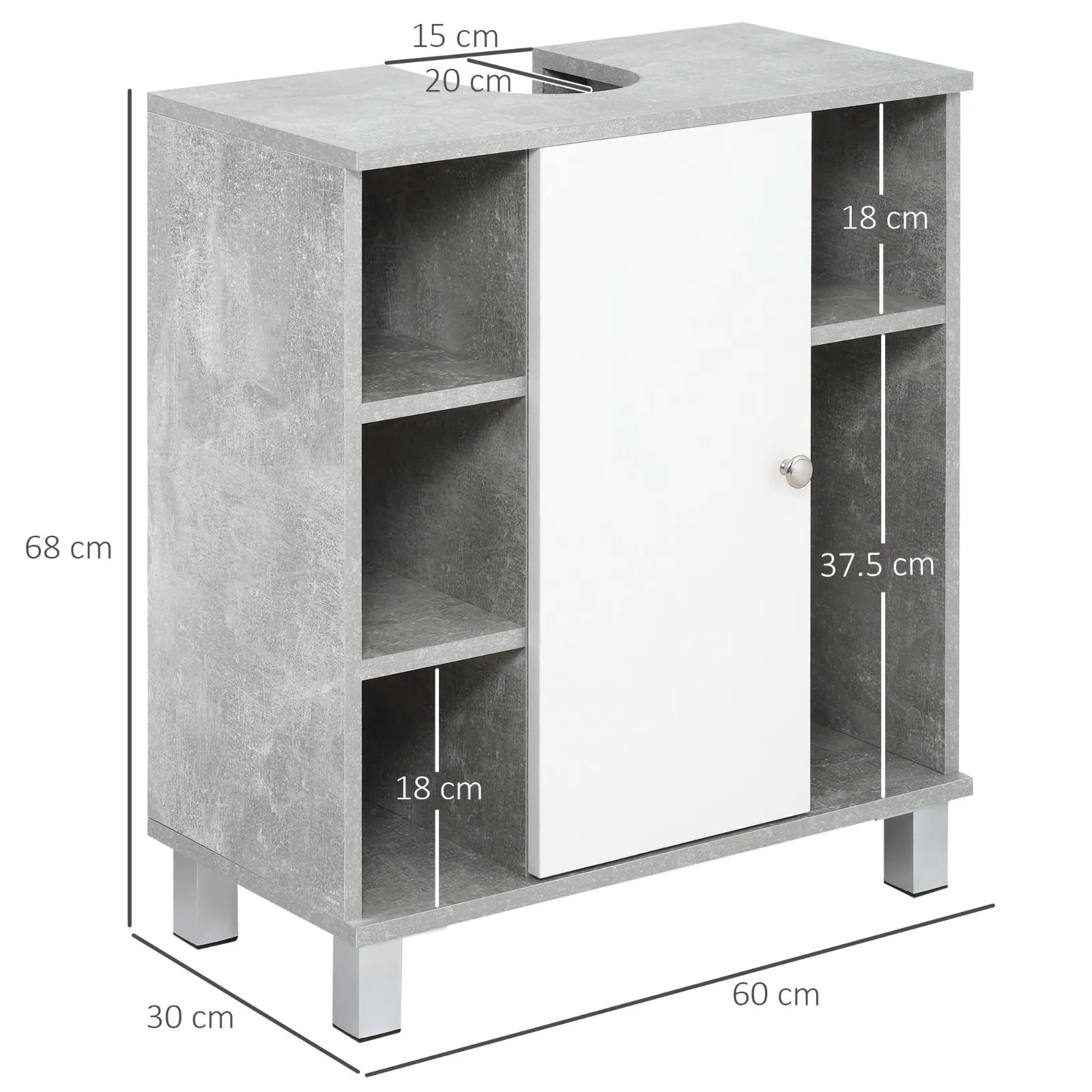 Create extra space in your bathroom with this Kleankin sublavabo furniture. Thanks to its modern design and soft colors it is versatile, and it combines perfectly with any type of furniture. The upper part has an “u” cut that allows you to insert it comfortably under the sink, hiding the hydraulic pipes. What are you waiting for, change the look of your bathroom with this locker with a minimal design!