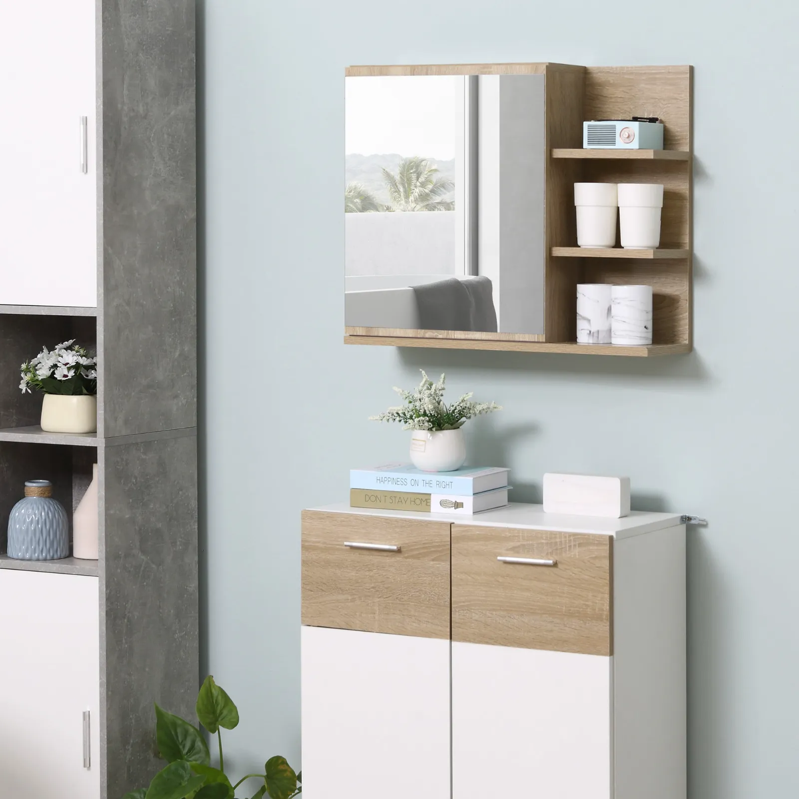 With the Kleankin bathroom mirror, keeping your beauty products in order is easy. The minimalist design gives a modern touch and makes the bathroom hanging perfect for different environments. It has 3 small open side rooms and a mirror door locker, equipped with a practical internal shelf. Hang it to the wall to the height you prefer and make your bathroom more elegant and functional!