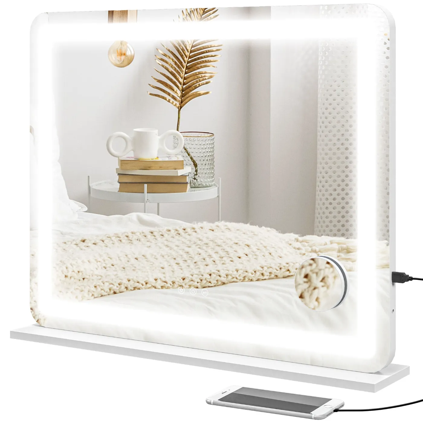 - CONVENIENT CHARGING: The illuminated makeup mirror is equipped with a USB port that allows you to conveniently charge your devices