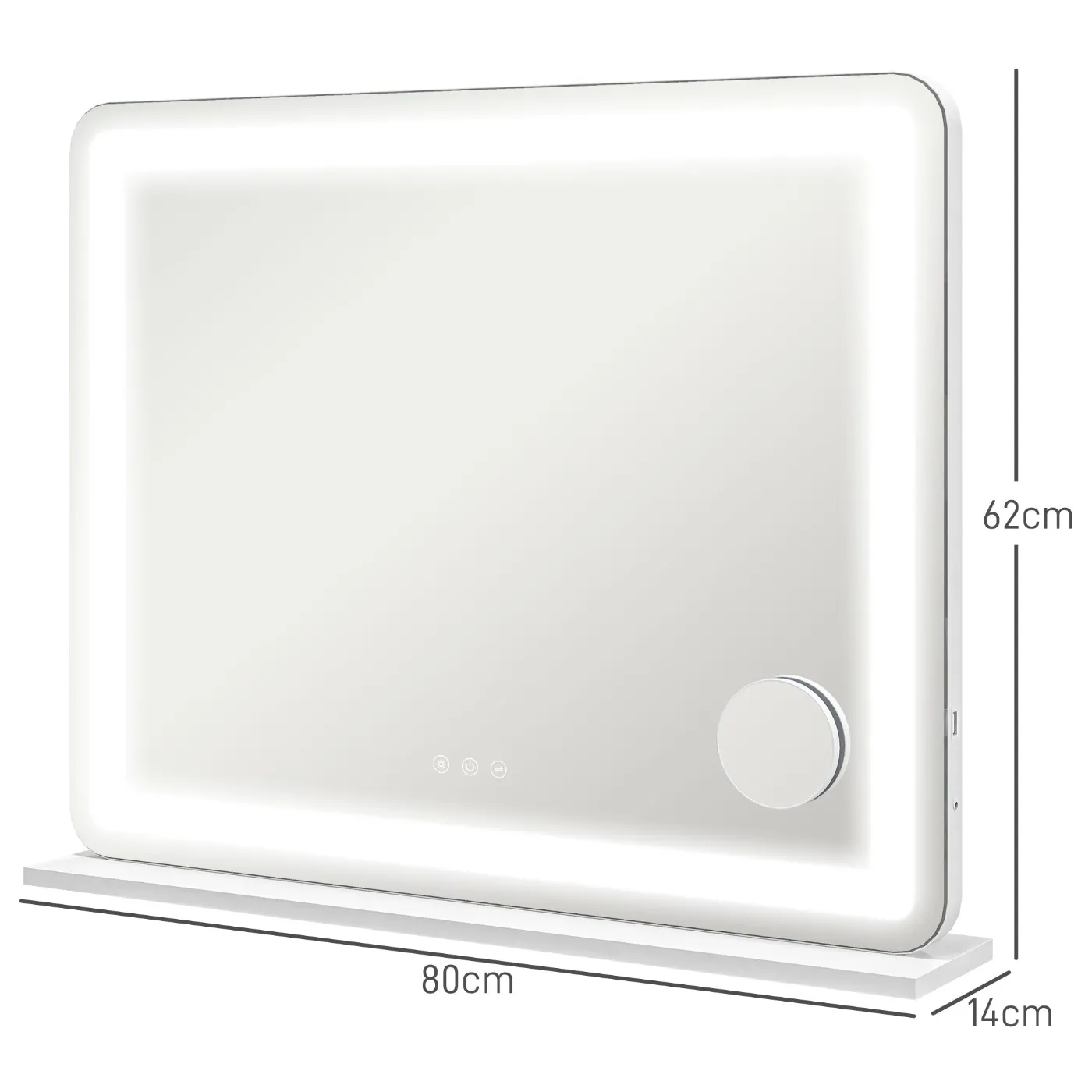 - WIDE VIEW: This wall mirror has a large surface area of 80W x 62H cm to provide a complete view. The built-in LED light has a lifespan of 50,000 hours, ensuring reliability and durability