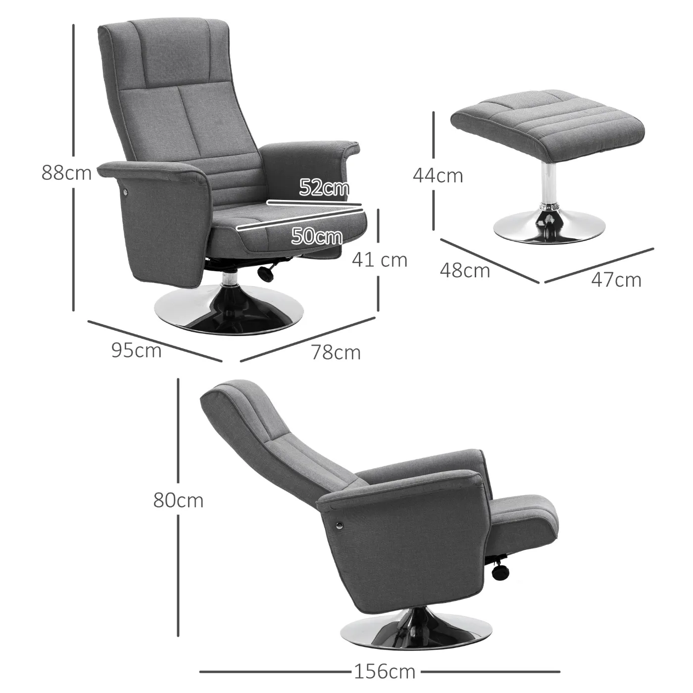 Massage Reclining Chair with Footrest, Linen Effect Fabric, 78x90x93 cm, Dark Grey