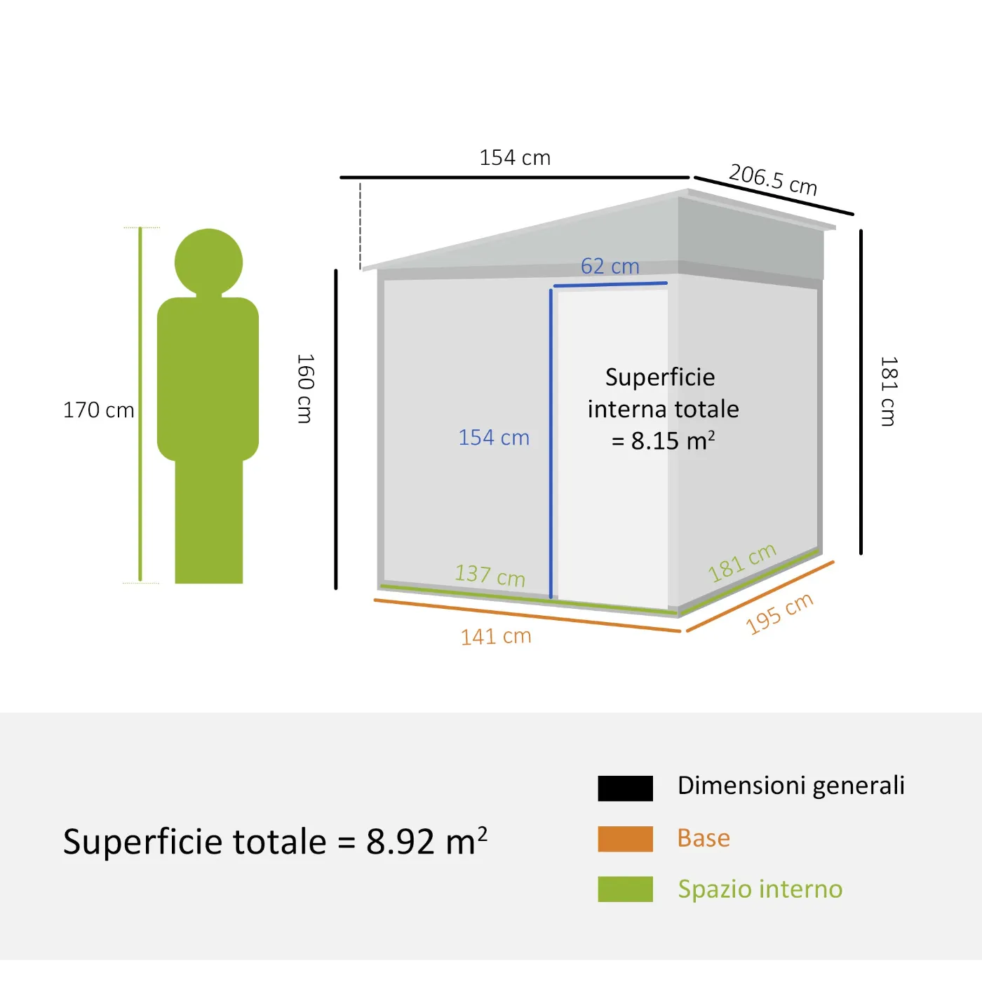 - DIMENSIONS: Overall dimensions: 154L x 206.5D x 160/181H cm. Interior: 137L x 181D cm. Includes gloves for use during installation. Assembly required, recommended 2-3 people