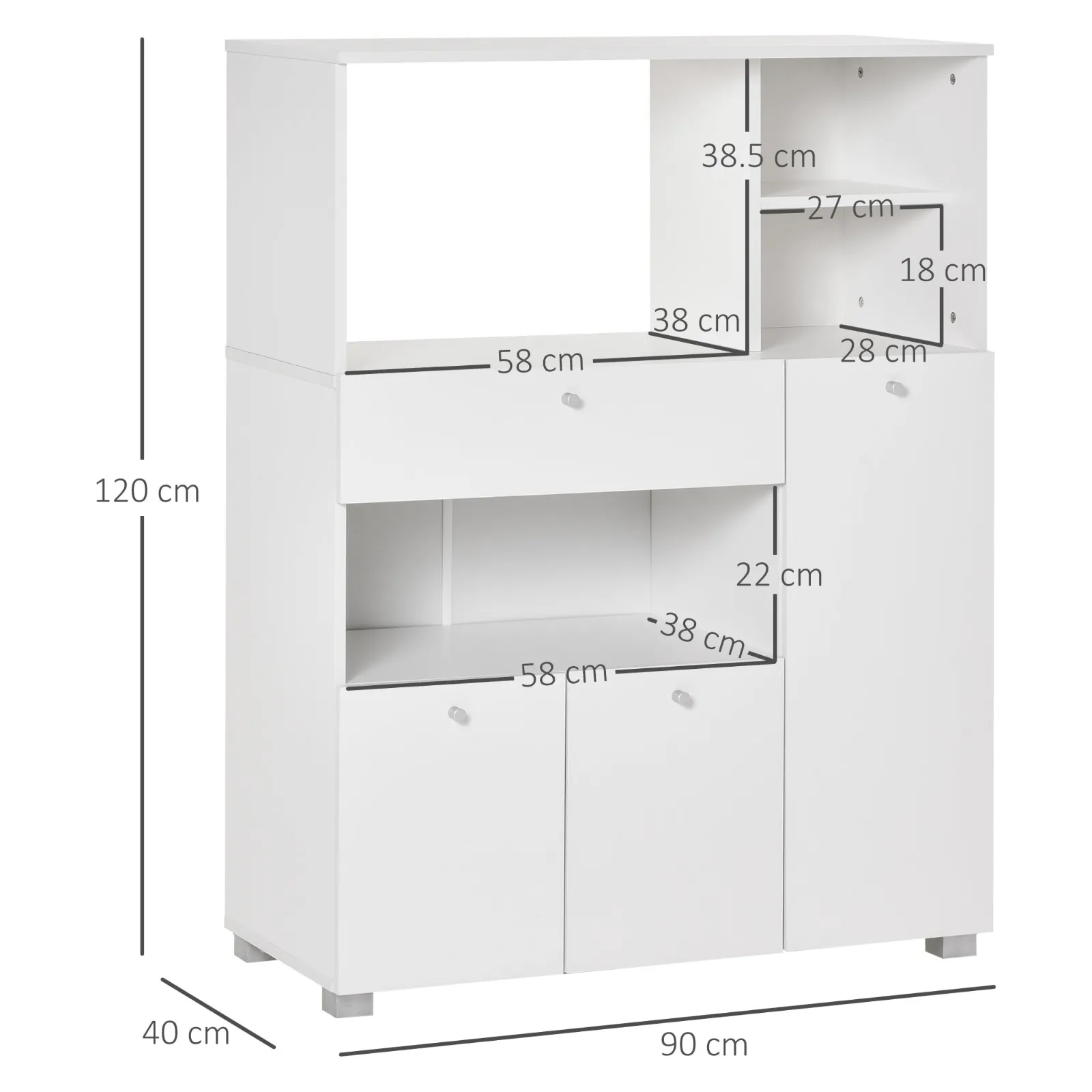 Creating an elegant corner in which to store your objects has never been easier! The Homcom kitchen cabinet adapts discreetly to different types of modern and contemporary furniture, and is perfect for storing kitchen utensils and food. It offers a lot of space to keep your indispensable in order thanks to the lockers and the drawer, as well as a practical open compartment ideal for your small appliances.