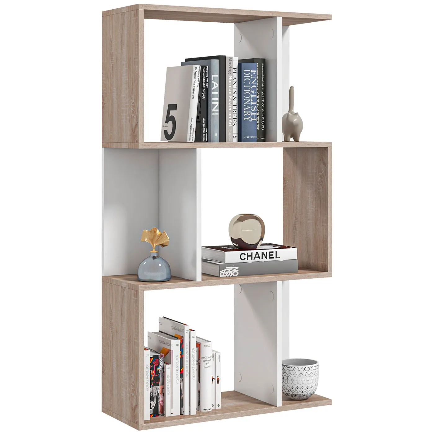 - PRACTICALITY AND SPACE: Equipped with 3 shelves, each with a large and a smaller compartment, this bookcase offers ample space for organizing books, decorations or other items in an orderly and functional way.