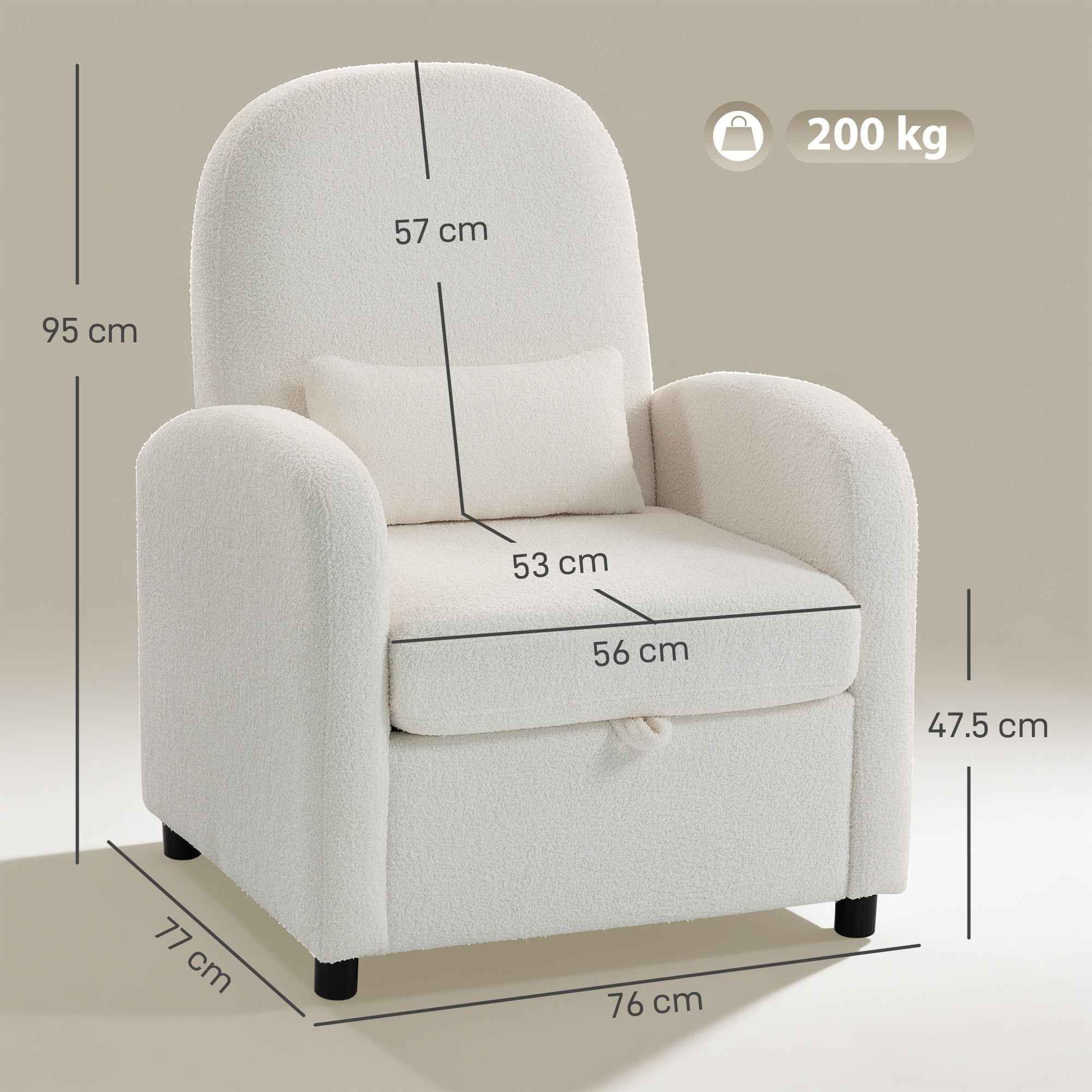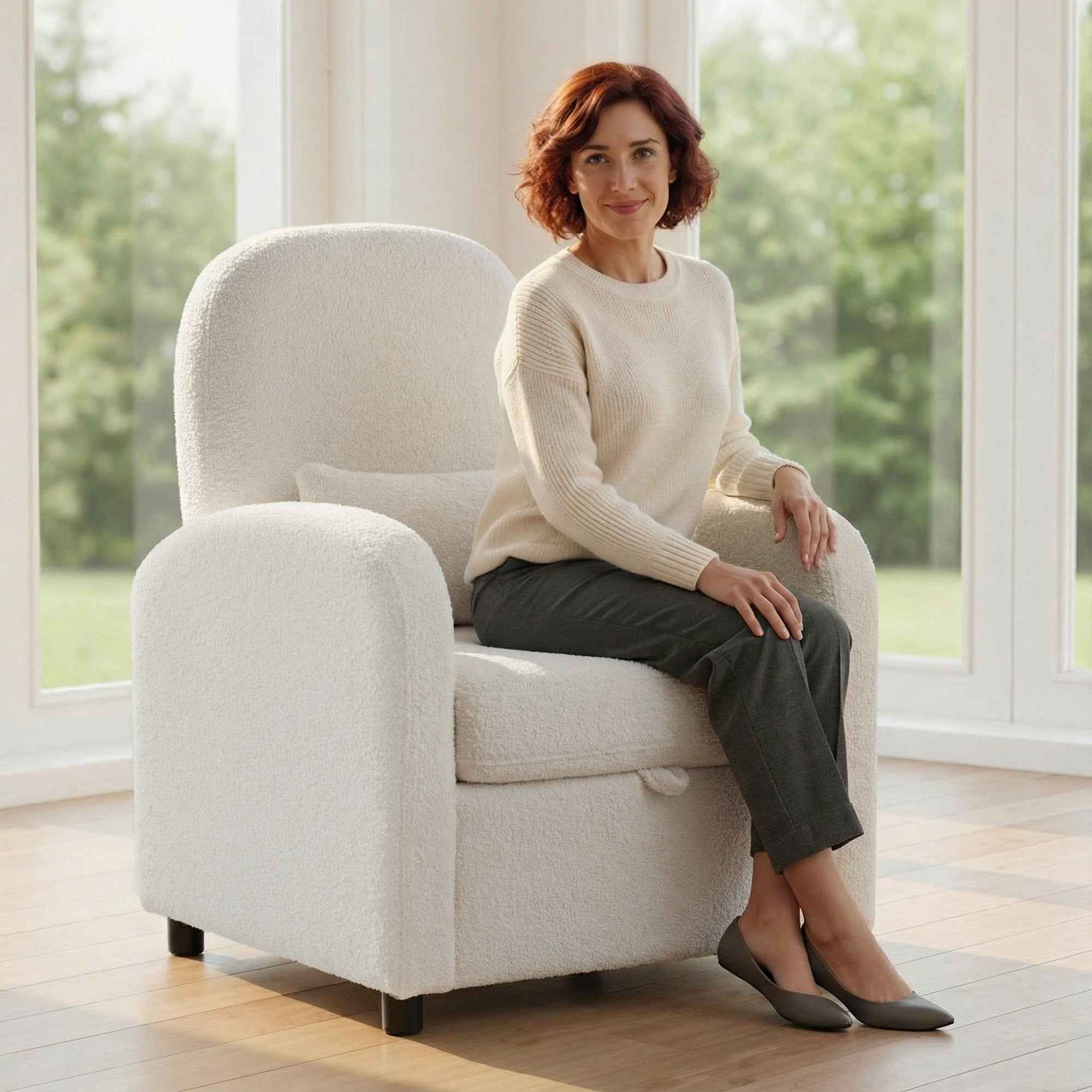- LARGE HIDDEN SPACE: Gently unfold the seat to reveal a 53x60x20cm hidden storage space where you can store blankets, books, remote controls, and more. This modern armchair is the ideal piece of furniture for finding comfort in small spaces.