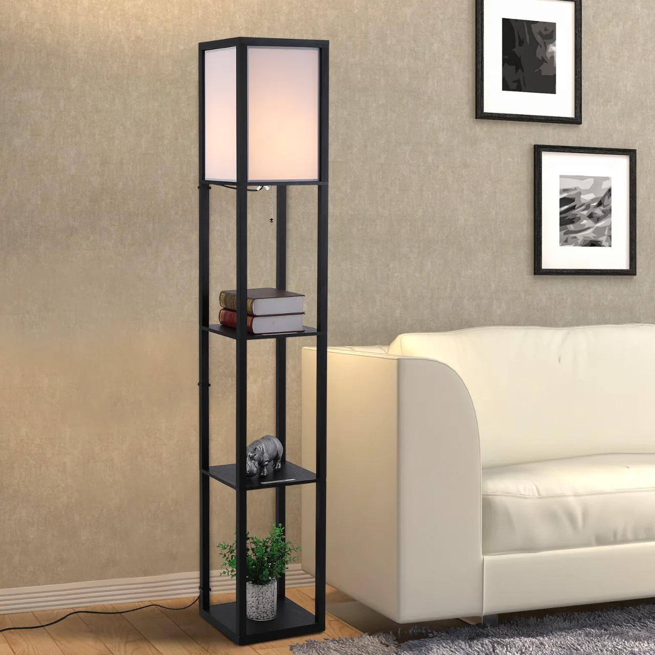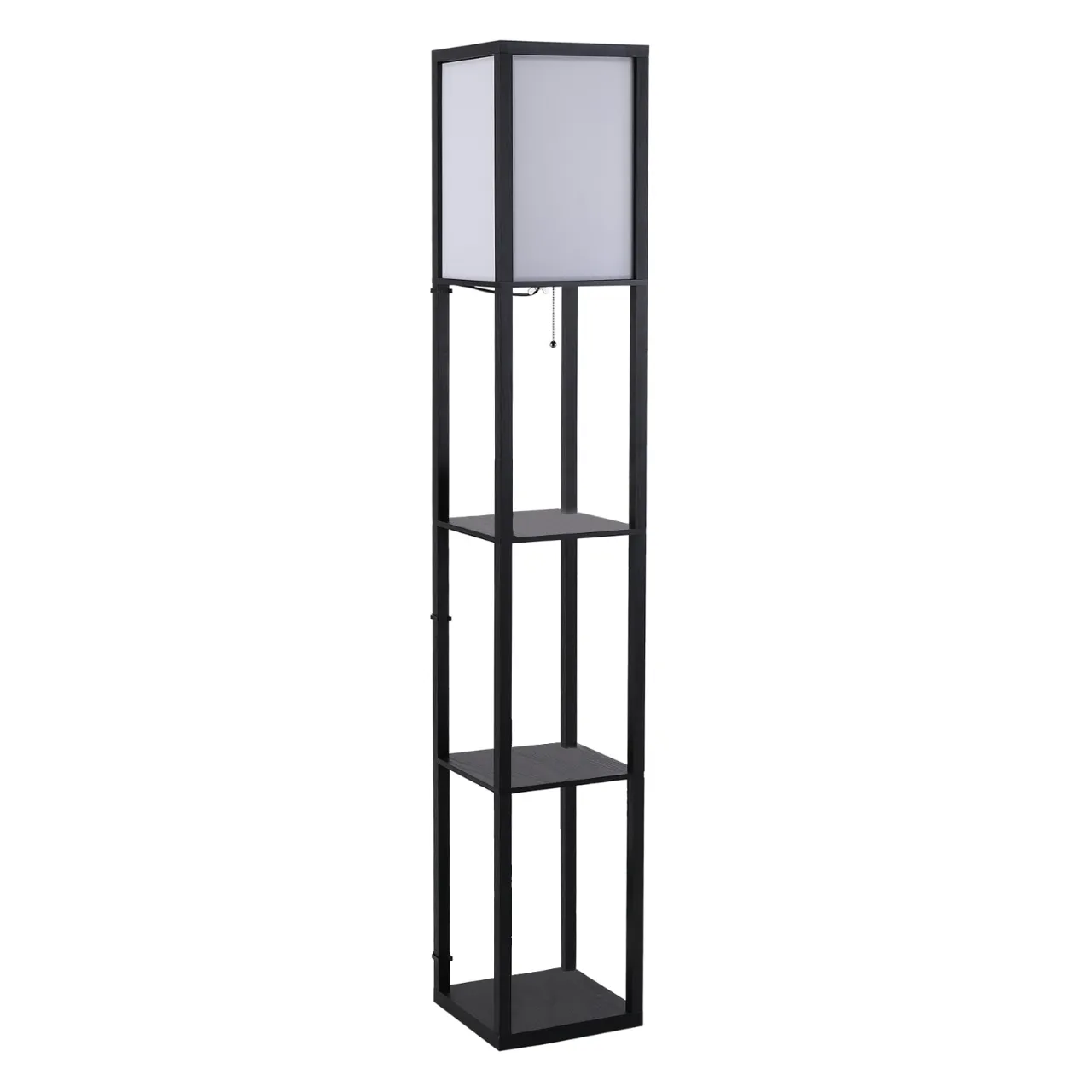 Modern Floor Lamp, Space-Saving Indoor Lighting Bulb with Living Room Shelves Cotton, MDF 26 x 26 x 160 cm Black and White