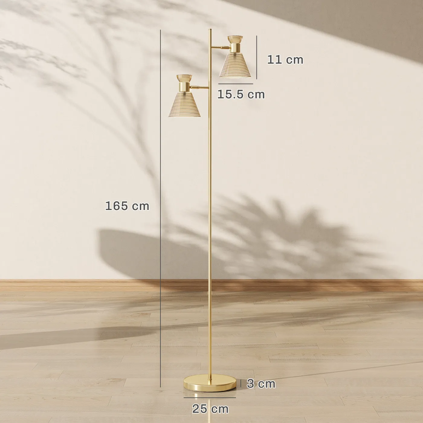 - • The floor lamp has two lampshades that adjust 45° to customize the lighting