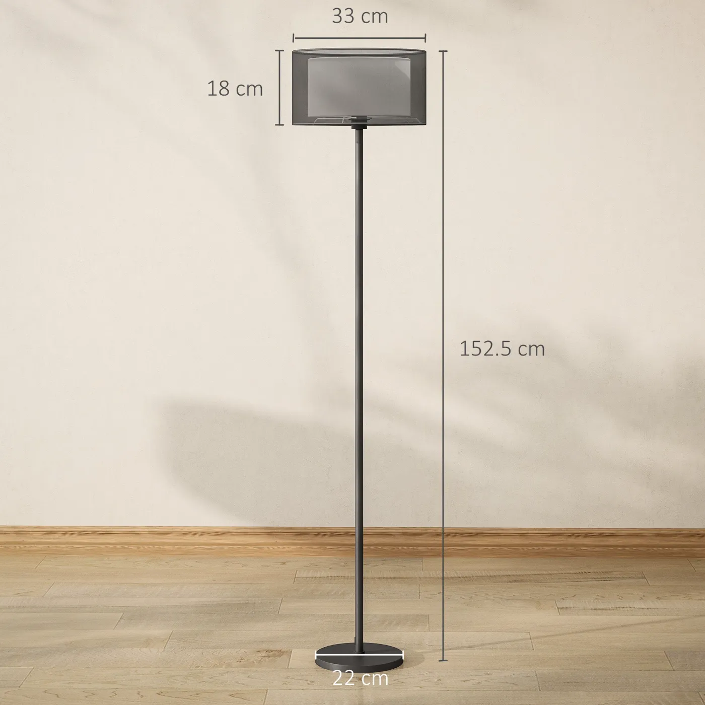 - DIMENSIONS: Overall dimensions: Ø33 x 152.5H cm. Base dimensions: Ø22 x 2.5H cm. E27 bulb socket, not included