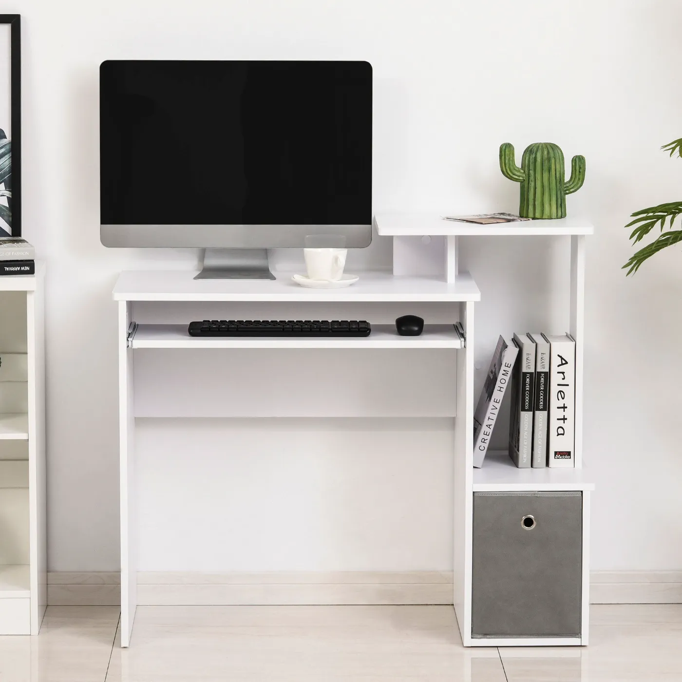 - AMPLE SPACE: This modern desk with pull-out keyboard tray, side shelves and fabric drawer offers you plenty of space to place your computer, printer, books, documents, stationery and much more.