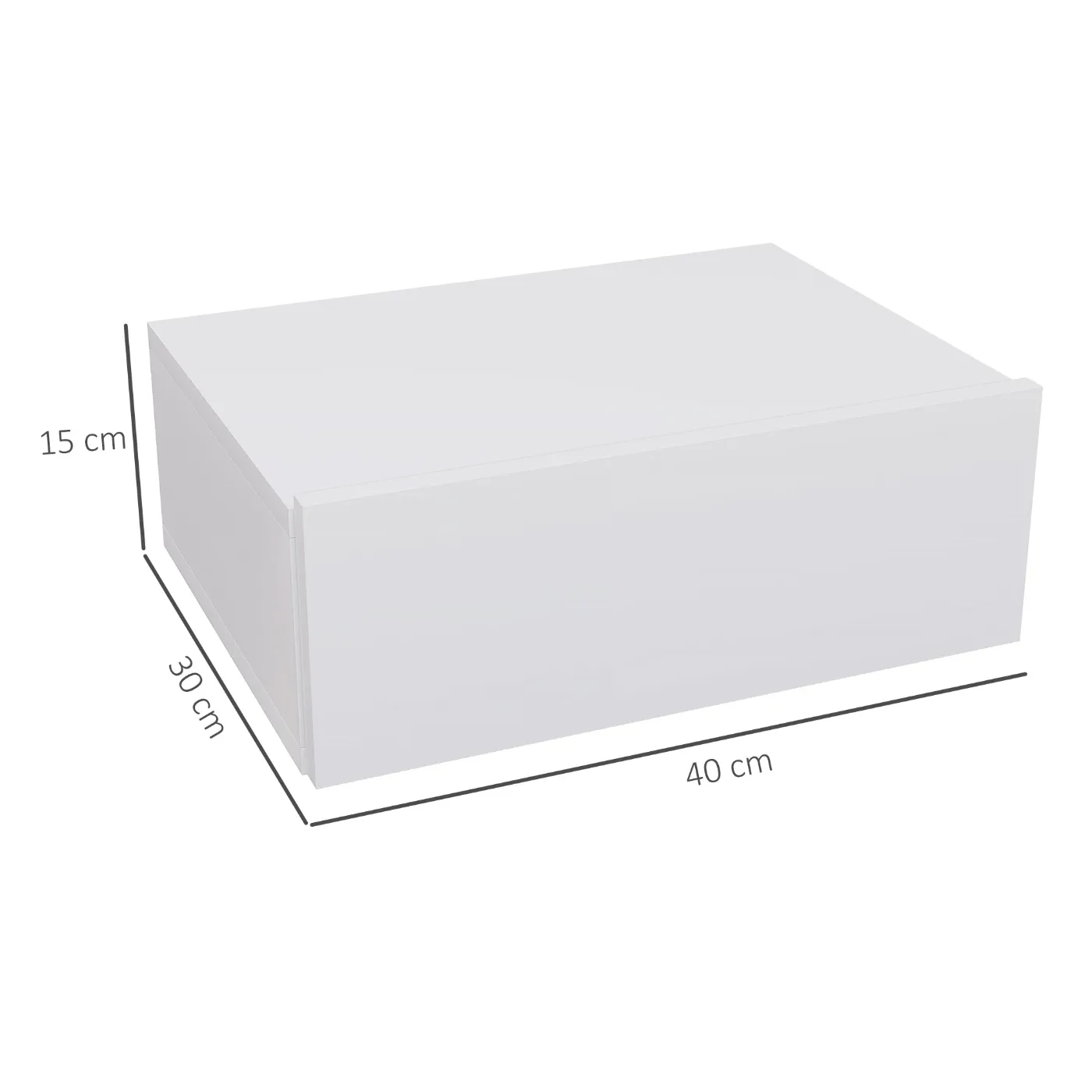 Modern Wall Mounted Bedside Table with Drawer, Wooden, 40x30x15 cm, White