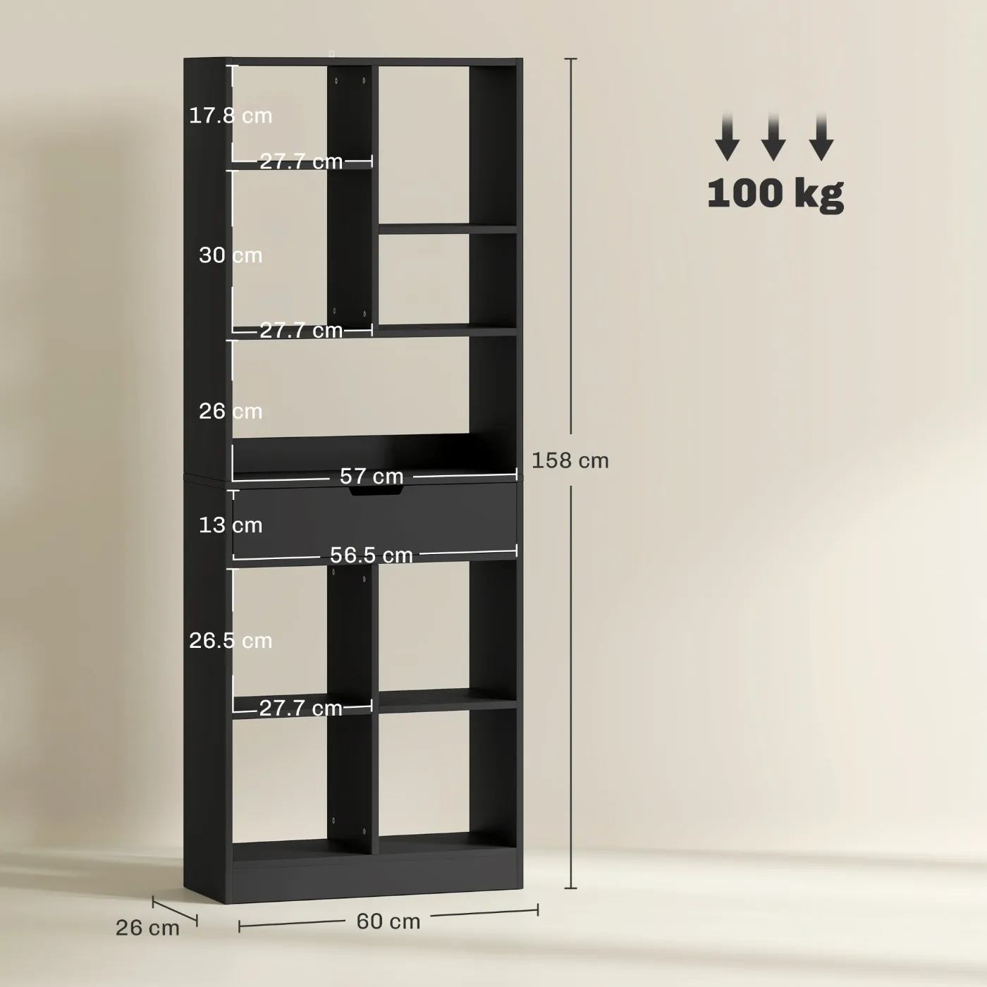 - PLENTY OF STORAGE SPACE: With open shelves of various sizes and a spacious drawer, this bookcase offers ample space to store and display books, magazines, office supplies, decorations and plants