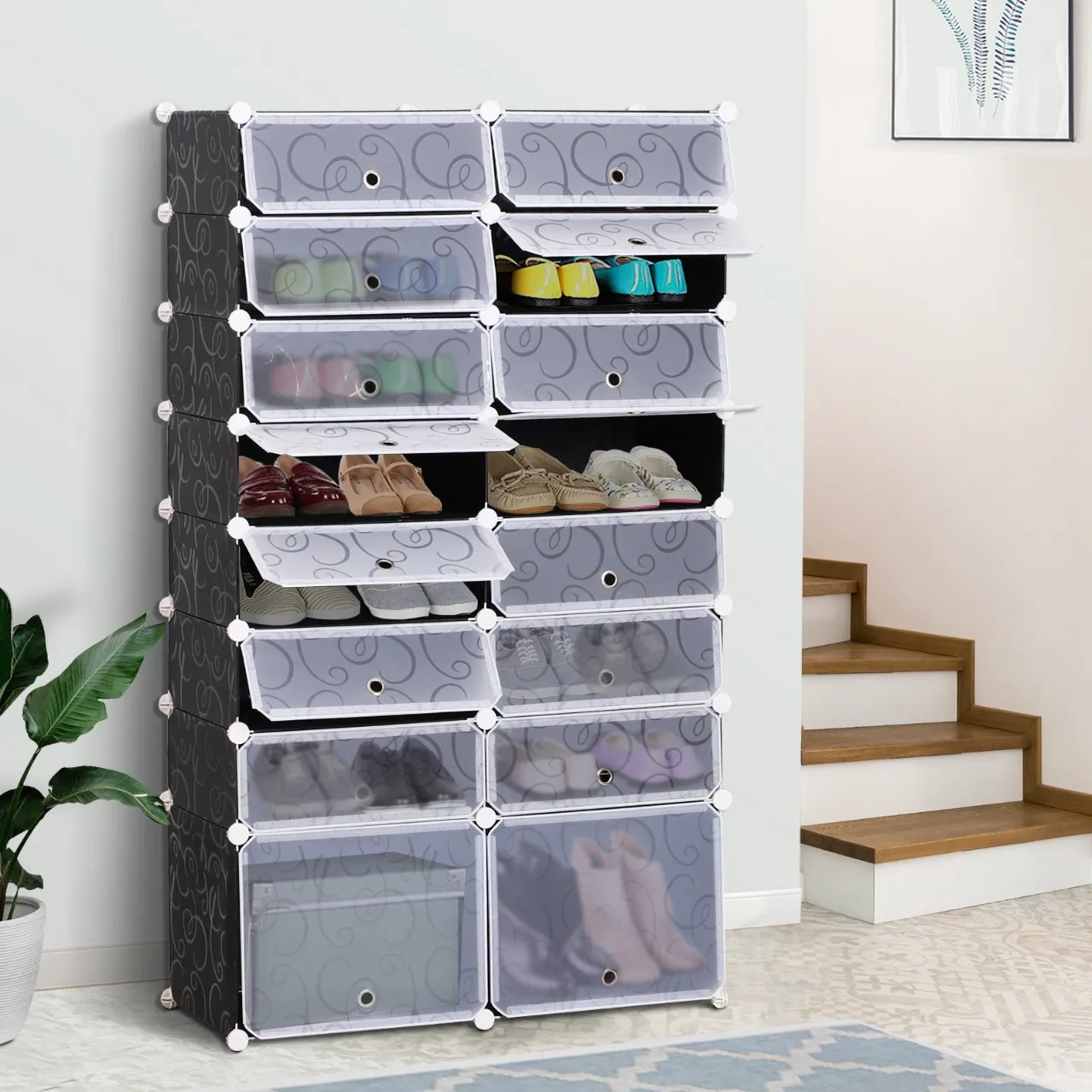 · It has 14 cubes and 2 large cubes, providing ample space for shoes and collections
