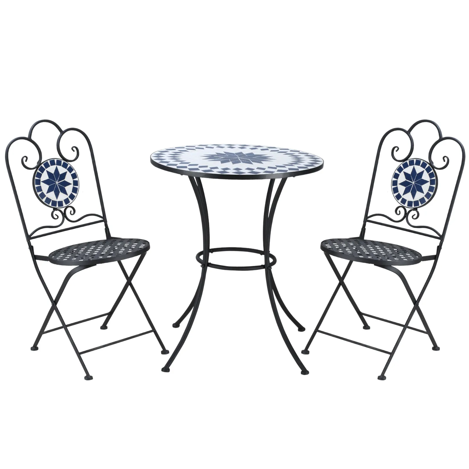 Enjoy your outdoor space with & nbsp; this & nbsp; three pieces of outsunny garden set. Mosaic floral motifs add a touch of style to your garden, balcony, courtyard and more. Thanks to the round session and the comfortable back, you will feel comfortable while you enjoy an afternoon tea. When they don’t have to be used, the two beautiful chairs can be folded and placed easily. This modern set with table and garden chairs will be an excellent addition to your relaxation.Carattera: • & Nbsp; 3 -piece sets with & Nbsp; Round Table & Nbsp; E & Nbsp; Due & Nbsp; Chairs • Floral motive motive and curved motif • Metal structure for a Durable use • Folding chairs not bulky and easy to transport • Perfect for garden, patio, terrace, courtyard and balcony • Assembly of the table required technical: • & nbsp; color: & nbsp; blue, black, black • & nbsp; material: metal, stone A mosaic • & nbsp; dimensions & nbsp; table: & nbsp; φ66 x 76.5acm • & nbsp; dimensions & nbsp; chair: & nbsp; 40.5l x 52p x 91acm • & nbsp; size of the session: & nbsp; 39L x 39pcm • & nbsp; sp; From & NBSP; Floor: & NBSP; 45.5cm • Rear dimensions: 40.5L x 45.5HCM • & Nbsp; Dimensions of the folded chair: & Nbsp; 104.5L x 40.5L x 13acm • & Nbsp; capacity & nbsp; weight: 120kg (chair), 60kg (table (table ) Content of the package: • 2 x chairs • 1 x table • 1 x manual