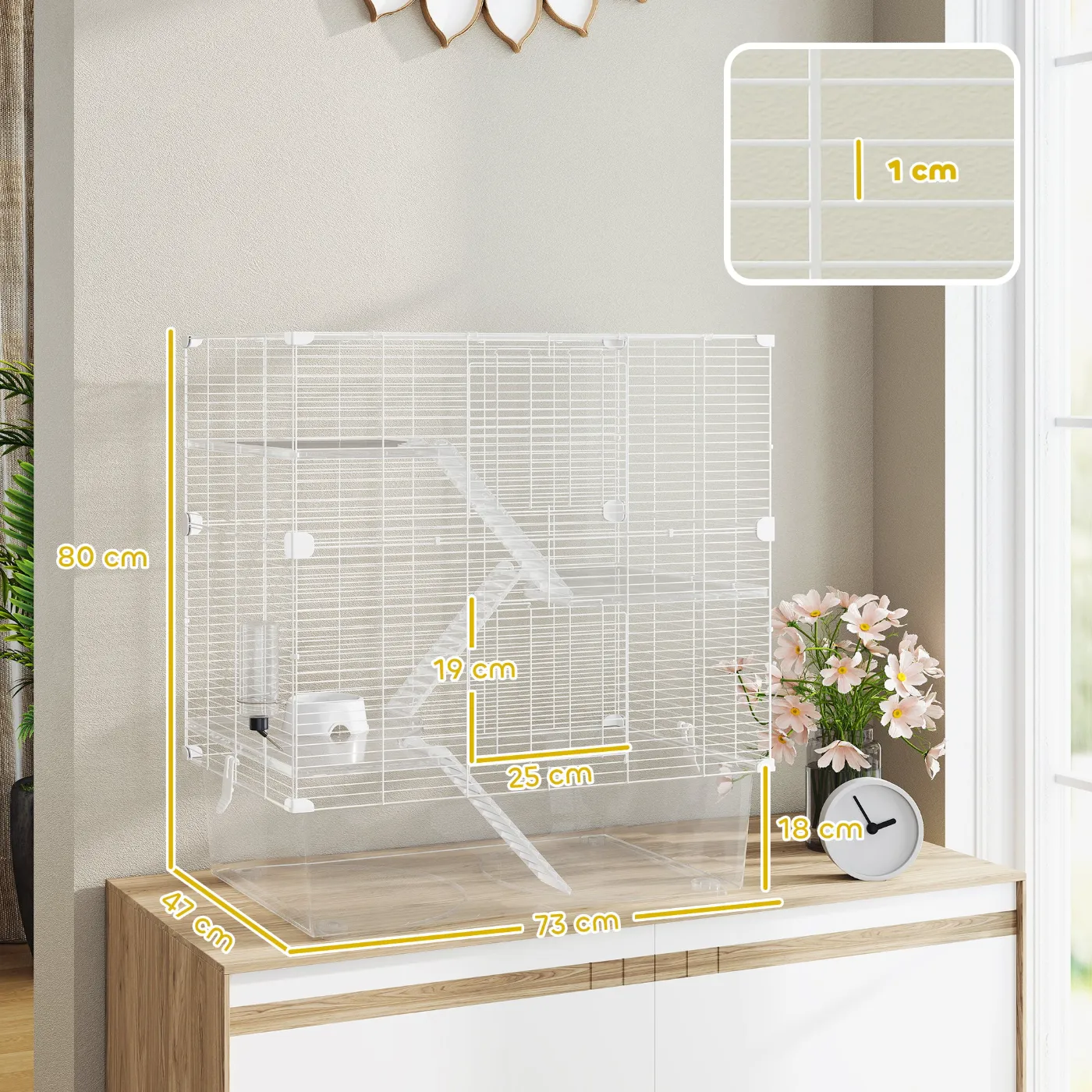 • GUARANTEED COMFORT: Give your four-legged friend a cozy and safe environment with our functional rodent cage! Our 18cm tray provides more space for litter, minimizing mess and protecting delicate paws.