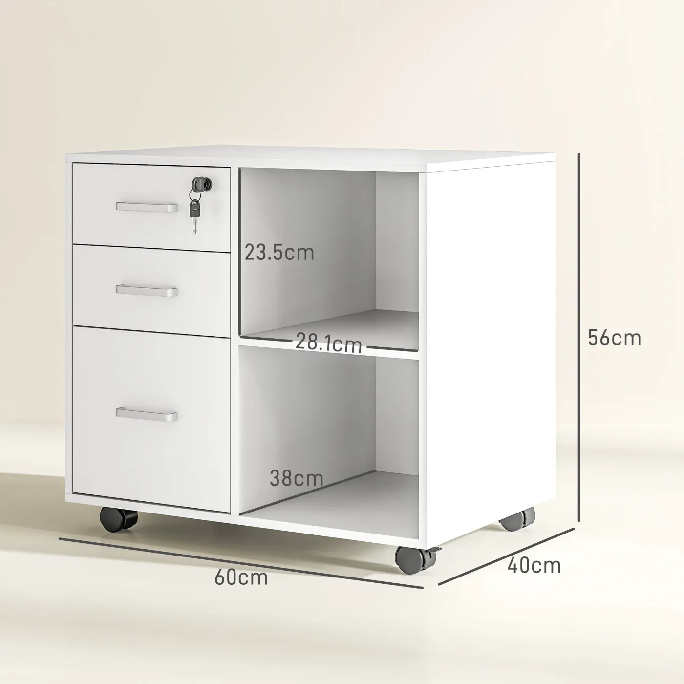 - AMPLE SPACE AVAILABLE: Equipped with three drawers and two open shelves, this office furniture is ideal for organizing documents and everyday materials. Perfect to place both next to and under the desk.